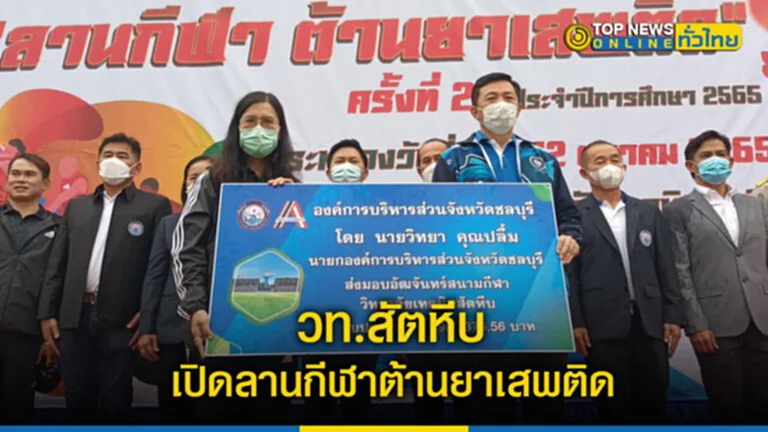 วันที่ 10 ต.ค.65 นายวิทยา คุณปลื้ม นายกองค์การบริหารส่วนจังหวัดชลบุรี เป็นประธานในพิธีเปิดโครงการ “ลานกีฬาต้านยาเสพติด ครั้งที่ 22 ” ประจำปี 2565 โดยมี ดร.อรทัย โยธินรุ่งเรือง สุดสงวน ผู้อำนวยการวิทยาลัยเทคนิคสัตหีบ นำคณะครู อาจารย์ และนักเรียน นักศึกษาร่วมในพิธี โดยจัดให้มีริ้วขบวนพาเหรด ของนักกีฬาและกองเชียร์ ตามสีของแต่ละแผนก รวม 12 หน่วยสีกีฬา อย่างวิจิตรพิศดารและสวยงาม