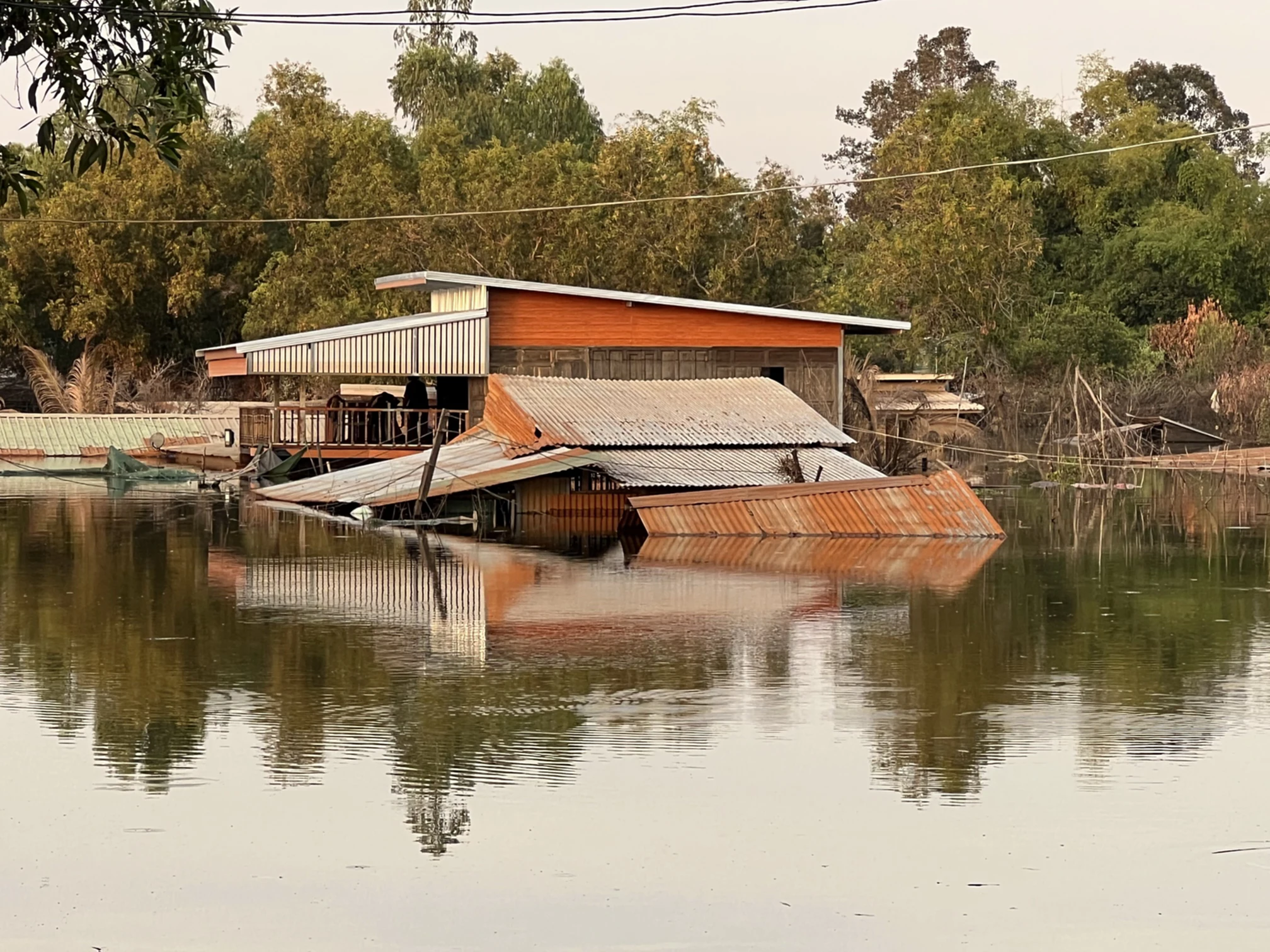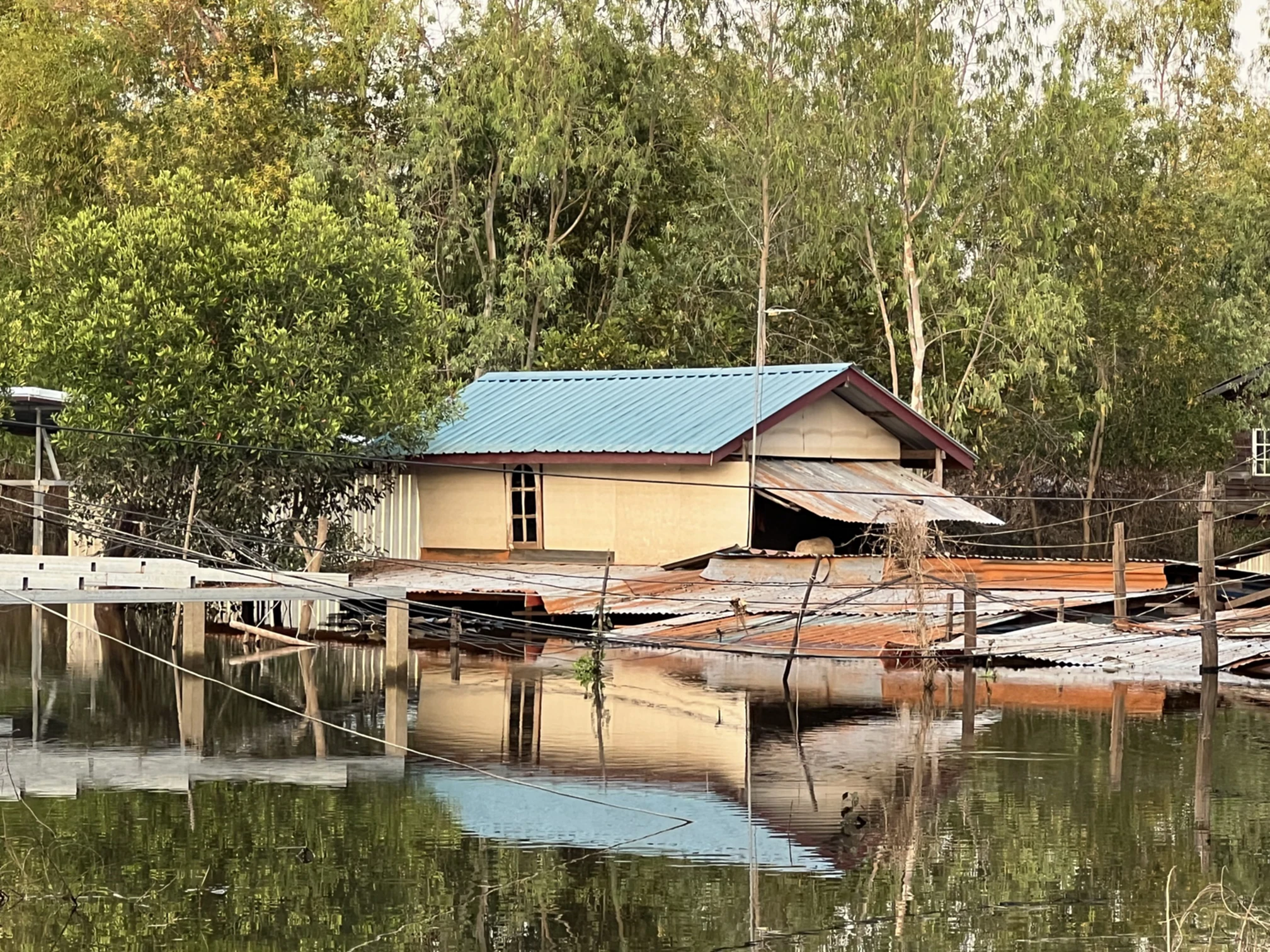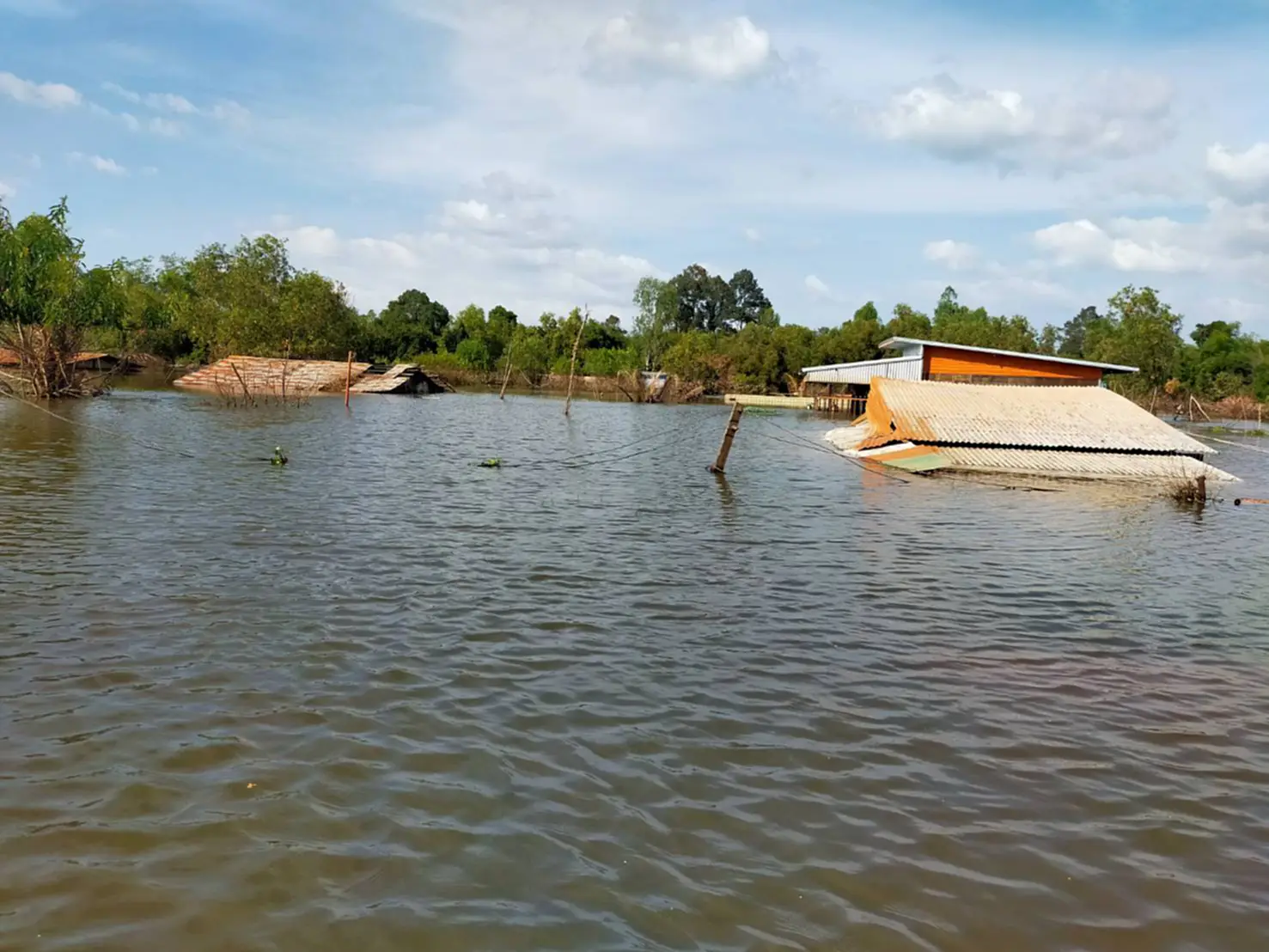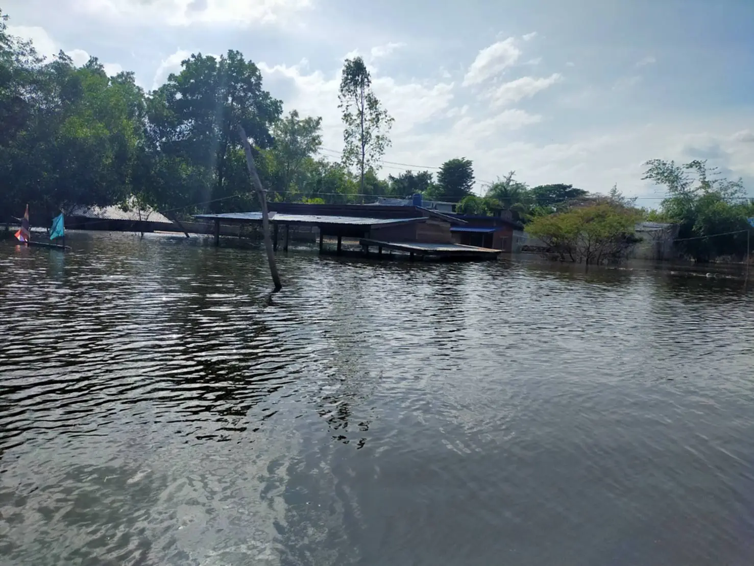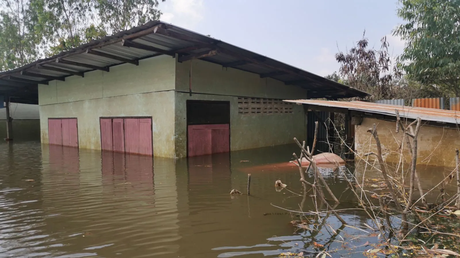 วันที่ 3 พ.ย. 2565 ผู้สื่อข่าวรายงานว่า ที่ชุมชนหนองหมู ต.โพธิ์ อ.เมือง จ.ศรีสะเกษ นางพเยาว์ โสดาลี ประธานชุมชนหนองหมู พร้อมด้วยแกนนำชาวบ้านหนองหมู ได้นั่งเรือพายเข้าไปสำรวจบ้านเรือนของชาวบ้านและบ้านเรือนของตนเองที่ถูกน้ำท่วมมานาน 2 เดือนแล้ว ปรากฏว่า บ้านเรือนจำนวน 170 หลัง ยังคงถูกน้ำท่วมสูงถึงหลังคาบ้าน ทำให้บ้านเรือนส่วนมากผุพังเสียหาย หลังคา ฝาบ้าน ประตู หน้าต่าง ผุพังเนื่องจากถูกน้ำท่วมเป็นเวลานานมาก ไม้ผลต่าง ๆ เช่น ต้นมะม่วง ต้นลำไย ต้นมะละกอ โดนน้ำท่วมเน่าตายหมด ทั้งนี้เนื่องจากว่า ชุมชนหนองหมูเป็นชุมชนที่อยู่ติดกับลำห้วยสำราญและอยู่ในพื้นที่ลุ่มทำให้บ้านเรือนของชาวบ้านที่อาศัยอยู่ในบริเวณนี้ถูกน้ำท่วมทั้งหมด และน้ำท่วมเป็นเวลานานกว่าทุกแห่งที่เกิดสถานการณ์น้ำท่วมในเขตพื้นที่ อ.เมืองศรีสะเกษ ชาวบ้านต้องพากันอพยพมาอาศัยอยู่ในเต็นท์ริมถนนเฉลิมราชย์ 60 พรรษาที่ทางเทศบาลเมืองศรีสะเกษ และส่วนราชการที่เกี่ยวข้องจัดหามาให้การช่วยเหลือชาวบ้านได้พักอาศัยเป็นการชั่วคราว ส่วนชาวบ้านที่มีญาติพี่น้องก็จะพากันไปขอพักอาศัยอยู่ที่บ้านญาติพี่น้องของตน ชาวบ้านส่วนมากไม่กล้าที่จะไปพักอาศัยอยู่ที่อื่น เนื่องจากว่า อยากอยู่ใกล้บ้านเรือนของตนที่ถูกน้ำท่วม เพราะว่าสามารถที่จะพายเรือเข้าไปดูแลบ้านเรือนของตนได้ง่าย