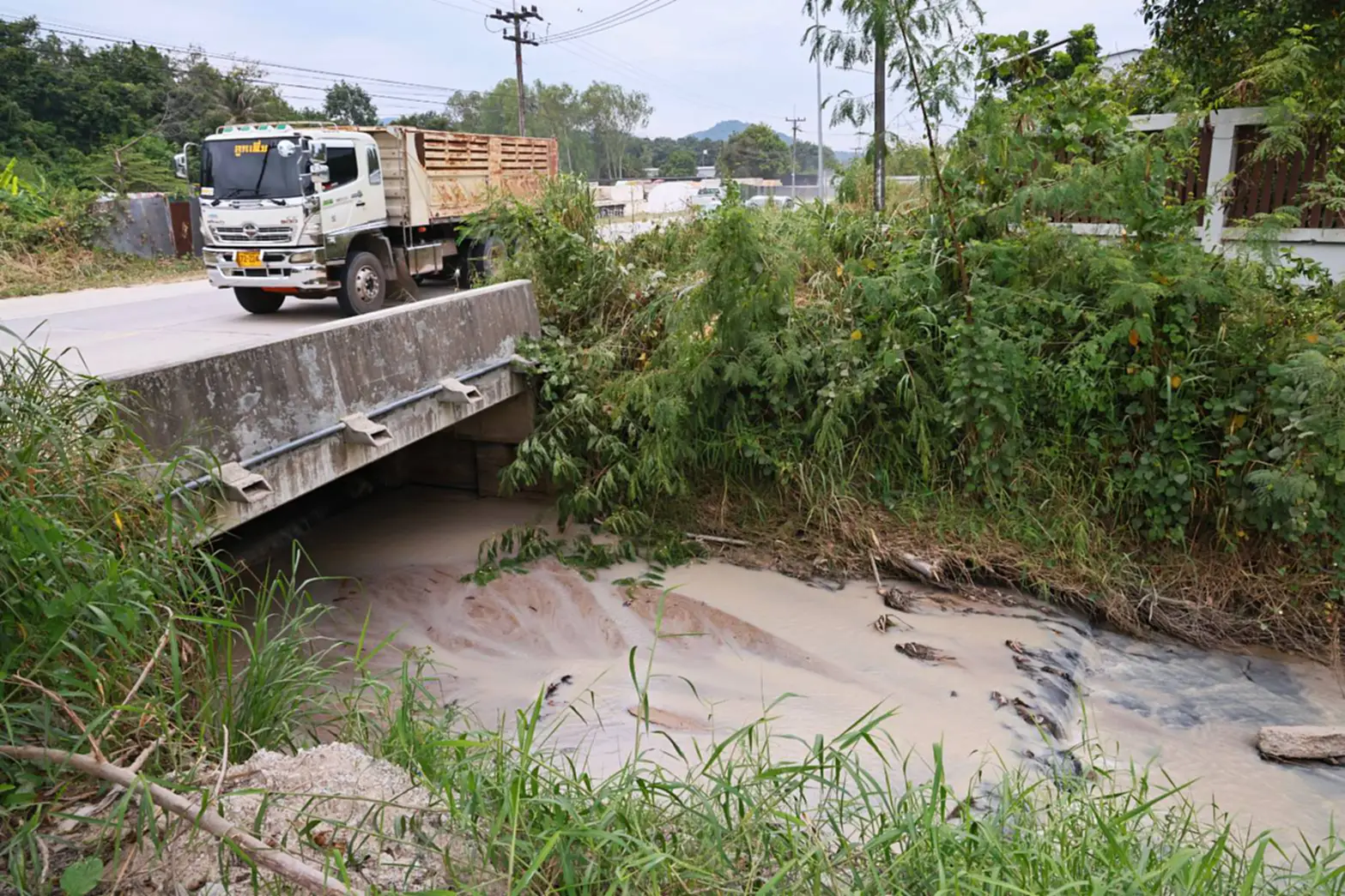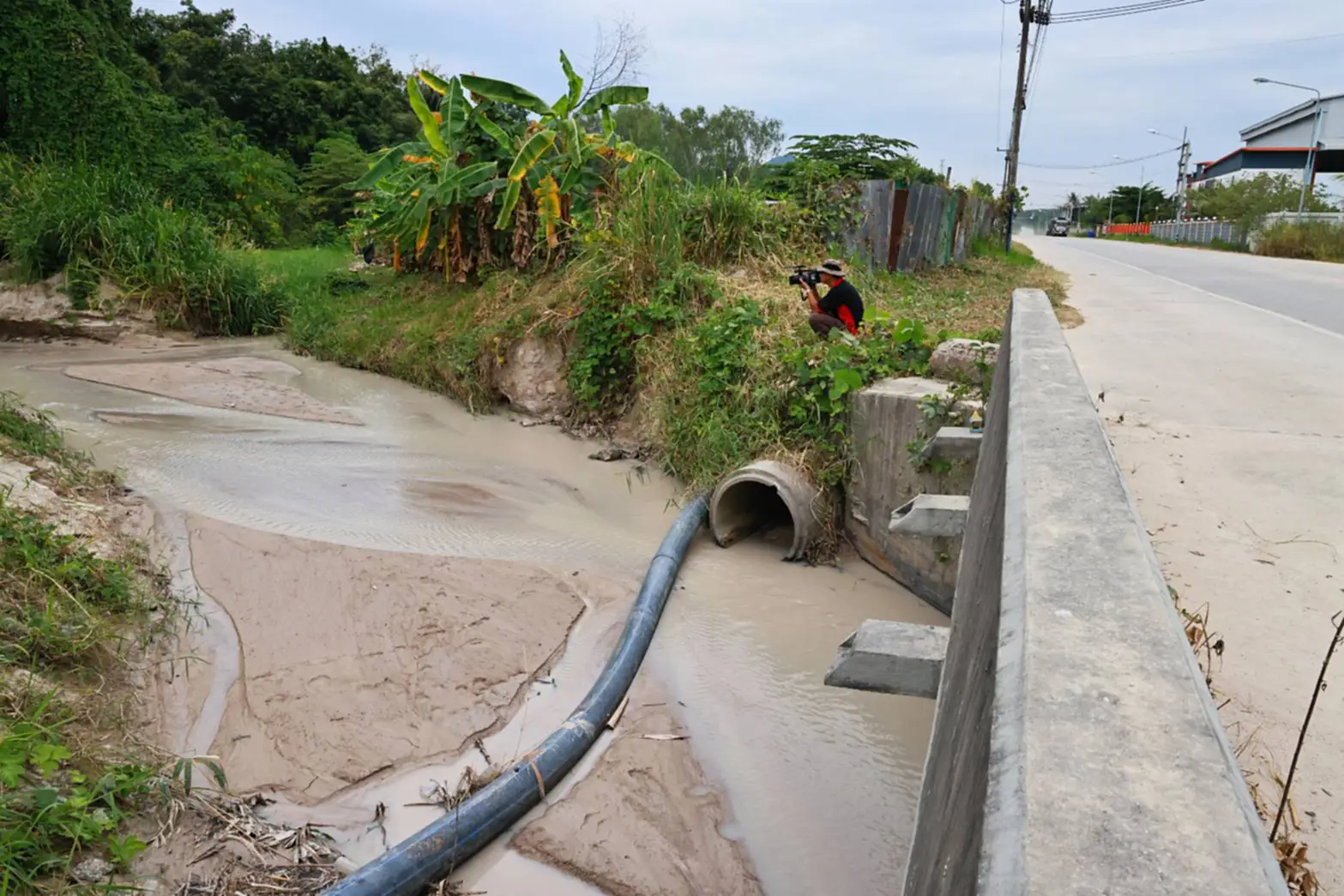 วันที่ 5 พ.ย. 65 มีชาวบ้านซอยพัฒนา-ชอยวัดคีรี ต.ห้วยโป่ง อ.เมือง จ.ระยอง ร้องเรียนว่าพบมีน้ำชะล้างจากการร่อนทรายของโรงทรายซึ่งเป็นของนายทุนในพื้นที่ ไหลเอ่อออกมาจากโรงทรายลงลำรางสาธารณะริมถนนสายแยกสุขุมวิท-ราฎร์บำรุง ต.ห้วยโป่ง อ.เมืองระยอง ตรวจสอบพบน้ำจากการชะล้างทรายดังกล่าวไหลออกมาป่าข้างทาง มีลักษณะสีขาวขุ่น มีกลิ่นเหม็น