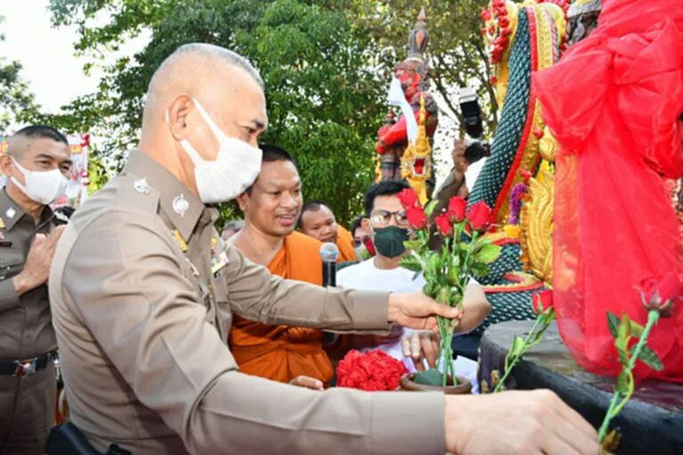 วันที่ 7 พ.ย. 2565 ผู้สื่อข่าวรายงานว่า ที่วัดหนองแวง ต.ทุ่ม อ.เมือง จ.ศรีสะเกษ พล.ต.ท.สมประสงค์ เย็นท้วม ผู้บัญชาการตำรวจภูธรภาค 3 ให้สัมภาษณ์ภายหลังจากการเป็นประธานในพิธีบวงสรวงท้าวเวสสุวรรณและพญานาค 4 ตระกูล ซึ่งพระมหาเฉลิมชัย ปภัสสโร (ดร.พระครูประภัสสรสุตกิจ) รักษาการแทนเจ้าอาวาสวัดหนองแวง ต.ทุ่ม อ.เมือง จ.ศรีสะเกษ เจ้าคณะแขวงบ้านช่างหล่อ เขต 2 , ผู้ช่วยเจ้าอาวาสวัดสุวรรณาราม ราชวรวิหาร แขวงศิริราช เขตบางกอกน้อย กรุงเทพฯ ได้นำคณะพุทธศาสนิกชนชาวกรุงเทพและชาวไทยจากทั่วประเทศร่วมกันบริจาคเงินสร้างท้าวเวสสุวรรณ จำนวน 2 ตนคือ ท้าวรุ่งเรือง และท้าวร่ำรวย จากนั้น ได้เป็นประธานในพิธีทอดกฐินสามัคคี เพื่อสมทบทุนในการก่อสร้างศาลาบำเพ็ญกุศลศาลาพักใจ จำนวนทั้งสิ้น 5,618,428.25 บาท แล้วว่า ในช่วงเทศกาลลอยกระทงในวันที่ 8 พ.ย. 65 นี้ว่า เบื้องต้นก็ฝากพี่น้องประชาชนว่าเที่ยวให้สนุกแต่อยู่ในกรอบของกฎหมายโดยเฉพาะอย่างยิ่งการจุดพลุดอกไม้เพลิงดอกไม้ไฟถ้าไม่ได้รับอนุญาตก็ขอให้หลีกเลี่ยง เพราะอาจจะทำให้เกิดอันตรายต่อผู้อื่นรวมทั้งอากาศยาน