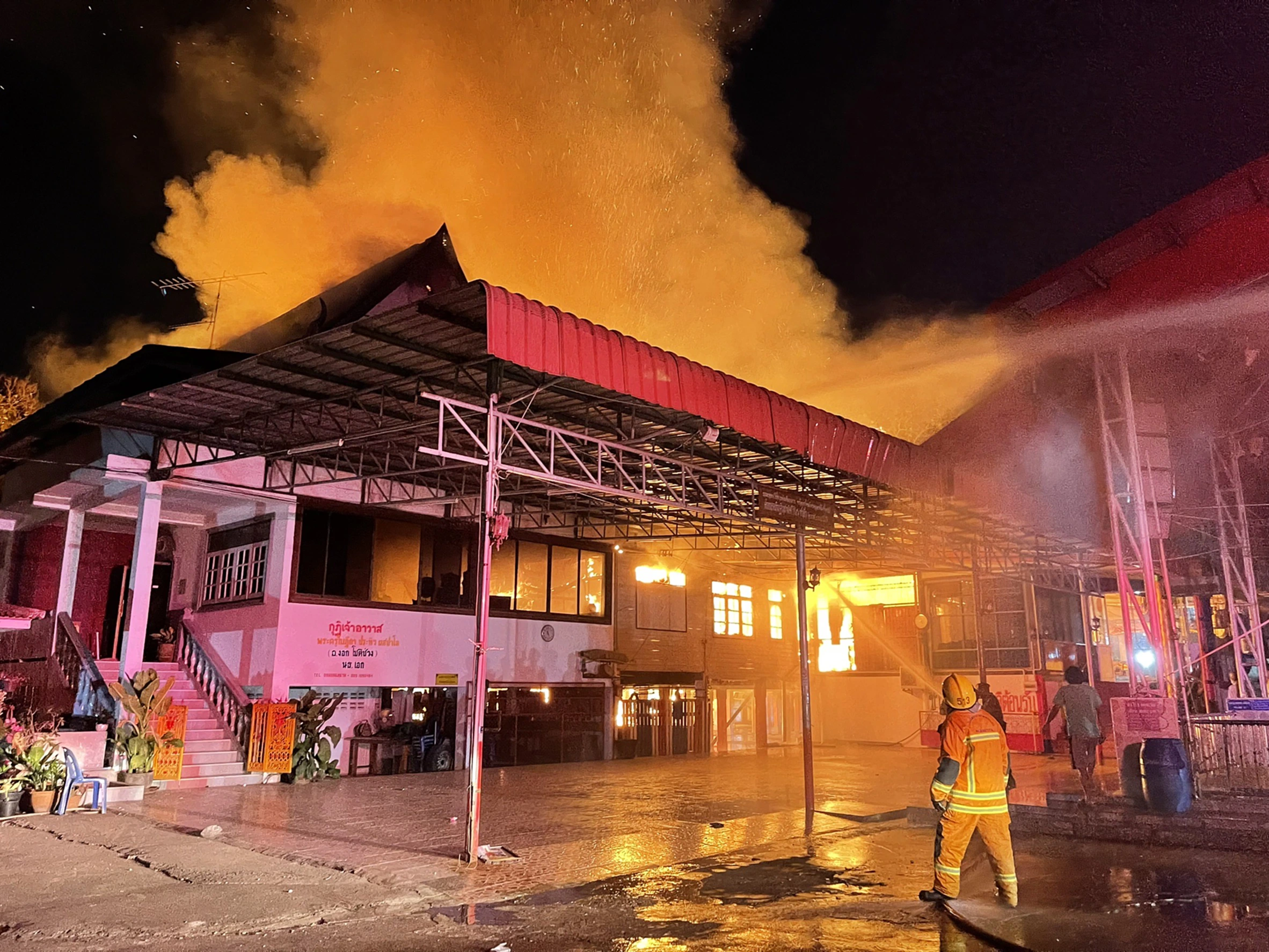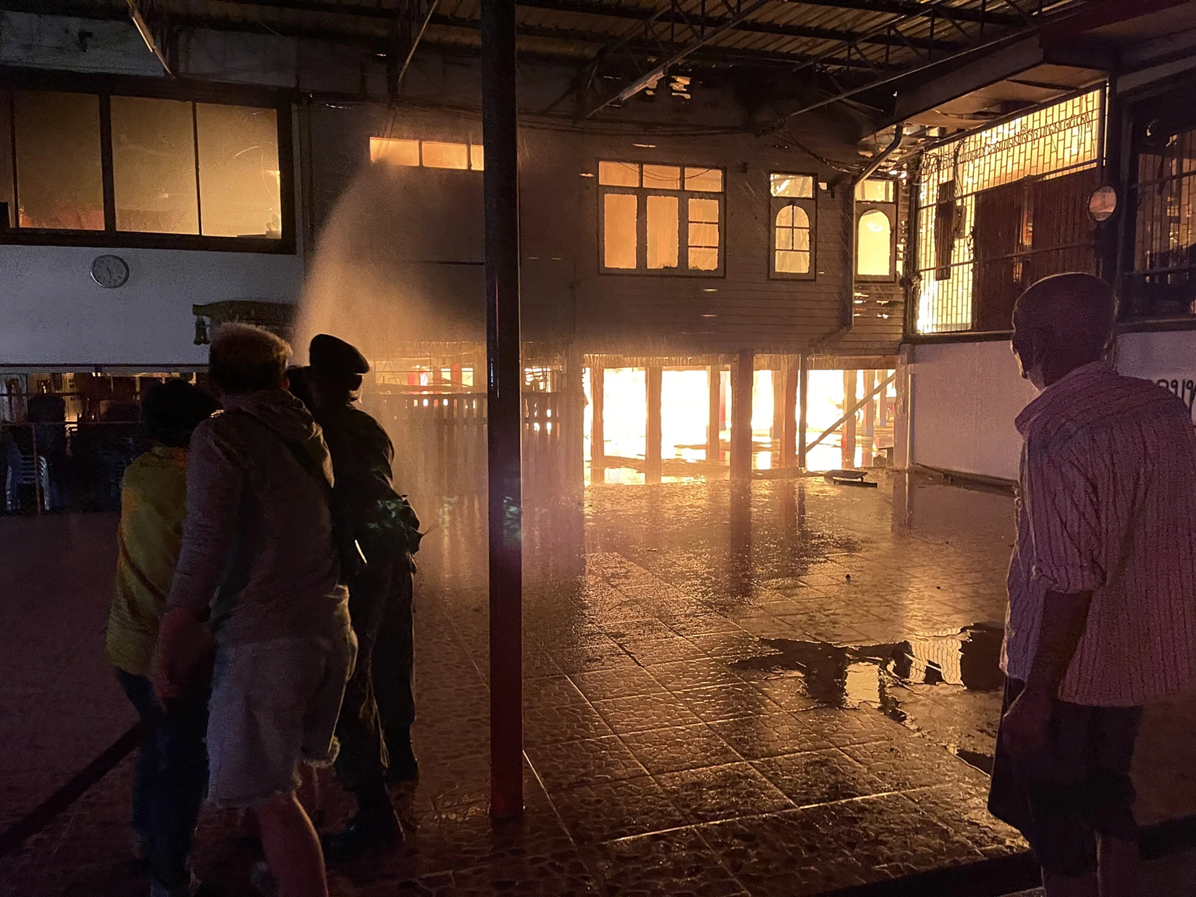 เวลา 23.30 น.วันที่ 8 พ.ย.65 พ.ต.ท.วิชาญ พวงทอง รองสว.(สอบสวน)สภ.พนมสารคาม ได้รับแจ้งเหตุเพลิงไหม้ศาลาการเปรียญหลังใหญ่วัดดอนทอง เลขที่ 87 หมู่ที่ 2 ตำบลท่าถ่าน อำเภอพนมสารคาม จังหวัดฉะเชิงเทรา หลังจากรับแจ้งจึงรายงานให้นางปิณฑิรา เก่งการพานิช นายอำเภอพนมสารคาม(ชุดไทยสีฟ้า) พ.ต.อ.สมชาย เมืองใย ผู้กำกับสถานีตำรวจภูธรรับทราบ ก่อนประสานรถน้ำดับเพลิงเทศบาลตำบลท่าถ่าน และรถน้ำดับเพลิงจากหน่วยงานองค์กรปกครองส่วนท้องถิ่นกว่า 20 คัน พร้อมด้วยหน่วยกู้ภัยพนม เข้าร่วมควบคุมเพลิง