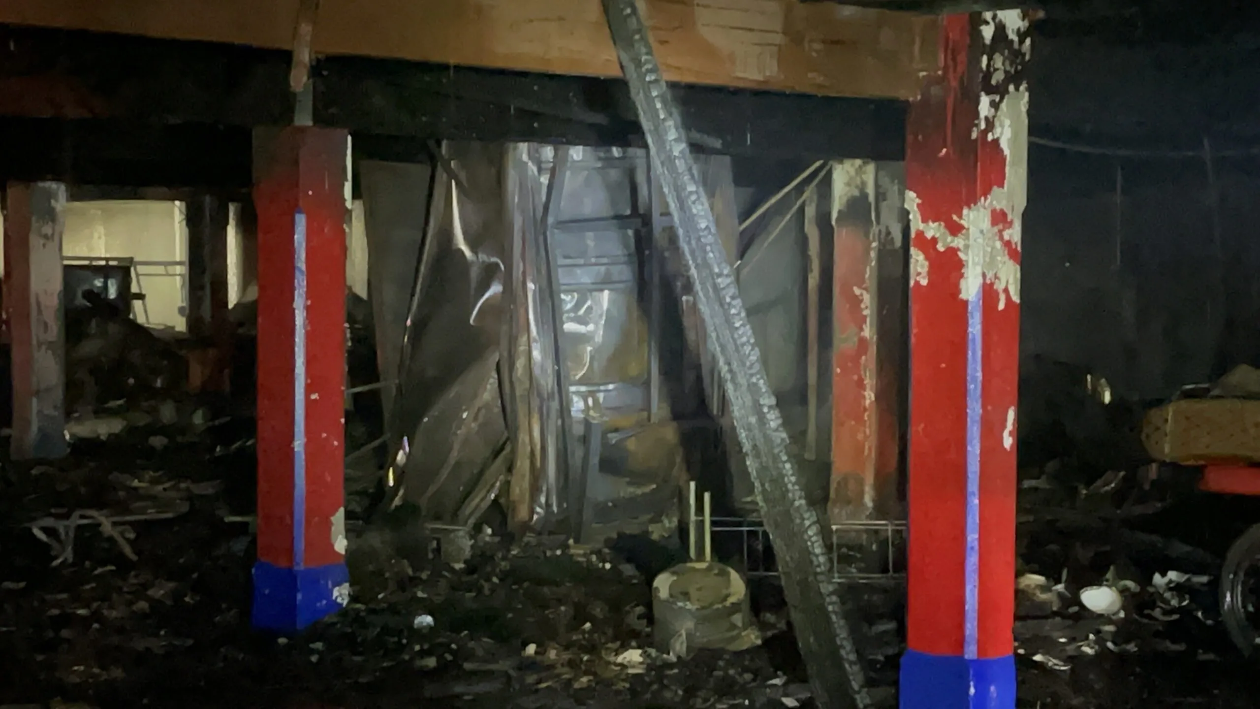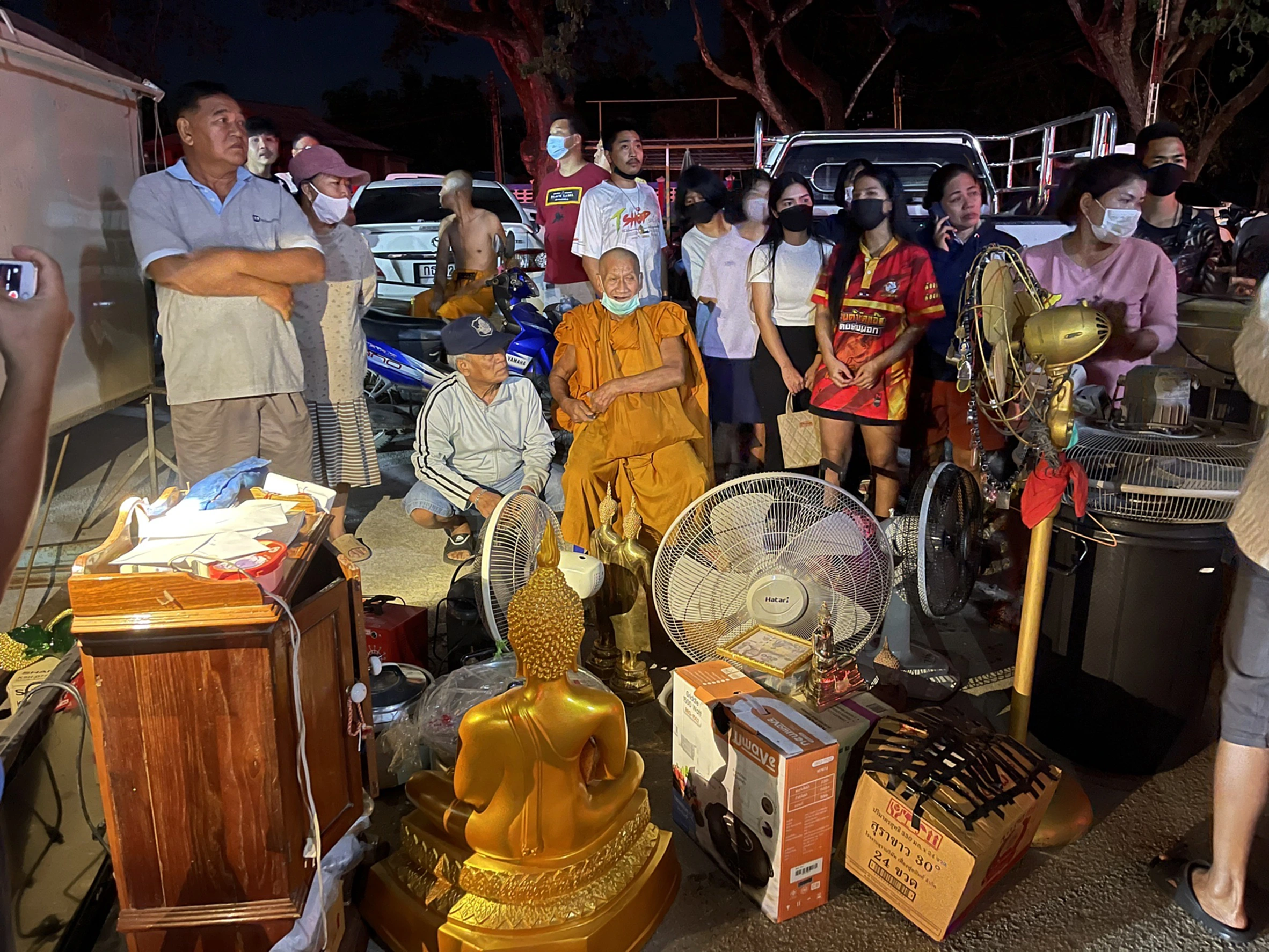 นายศิวะพงษ์ วงค์ษา อายุ 17 ปี(เสื้อสีขาวมีลายสีดำ) เล่าว่า ตนเองได้มาเฝ้าศพ ซึ่งคนตายเป็นยายของตน ระหว่างที่ตนขนที่นอนเพื่อมานอนเฝ้าศพอยู่นั้น ตนก็เห็นแสงเพลิงได้ลุกไหม้มาจากทางด้านห้องเก็บของบนศาลาการเปรียญหลังเกิดเหตุ ก่อนที่จะลุกไหม้ลามด้านบนฝ้าอย่างรวดเร็วไม่ถึง 10 นาทีมาถึงตรงที่ตั้งโลงศพ ตนเองจึงรีบหาน้ำดับไฟ ก่อนจะมีพระลูกวัดช่วยกันนำถังดับเพลิงมาดับไฟ แต่ก็ไม่สามารถดับได้ เพราะศาลาเป็นไม้ ทุกคนจึงรีบหนี ก่อนที่จะแจ้งเจ้าหน้าที่มาช่วยกันดับ