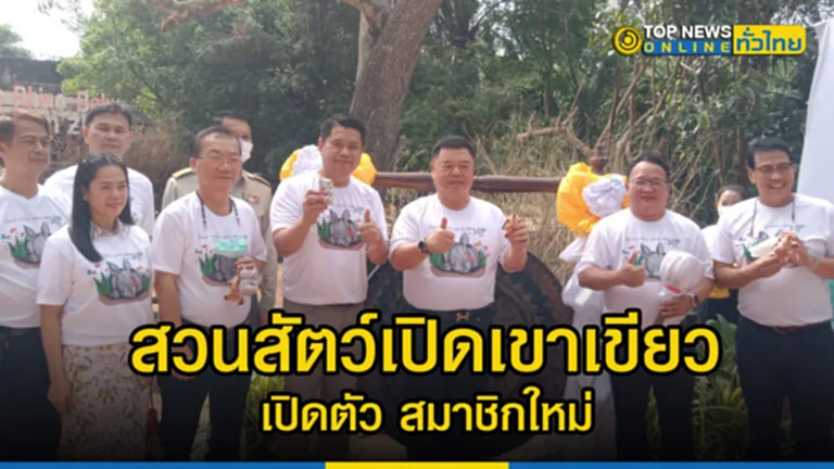 วันที่ 11 พ.ย. 2565 ที่ส่วนจัดแสดงสัตว์แอพริกา สวนสัตว์เปิดเขาเขียว อ.ศรีราชา จ.ชลบุรี นายอรรถพร ศรีเหรัญ ผู้อำนวยการองค์การสวนสัตว์แห่งประเทศไทย และนายเทวินทร์ รัตนะวงศะวัต ผู้อำนวยการสวนสัตว์เปิดเขาเขียว ให้การ ต้อนรับ นายธเนศพล ธนบุณยวัฒน์ เลขานุการรัฐมนตรีว่าการกระทรวงทรัพยากรธรรมชาติและสิ่งแวดล้อม เป็นประธานเปิดตัว สมาชิกใหม่ “ลูกแรดขาว” ตัวแรกของสวนสัตว์เปิดเขาเขียว และขององค์การสวนสัตว์แห่งประเทศไทย นายเทวินทร์ รัตนะวงศะวัต ผู้อำนวยการสวนสัตว์เปิดเขาเขียว เผยว่า เป็นความภาคภูมิใจของคนในองค์การสวนสัตว์แห่ง ประเทศไทย เมื่อสวนสัตว์เปิดเขาเขียวประกาศข่าวดี ในวันที่ 10กันยายน 2565เวลา 11.45น. ที่ผ่านมา สวนสัตว์เปิดเขา เขียวได้สมาชิกใหม่ “ลูกแรดขาว” เพศผู้ จำนวน 1ตัว ซึ่งเกิดจากแม่ชื่อว่า “กริตท์จิ” แรดขาววัย 8ปี และพ่อชื่อ “ซูดี้” อายุ 17ปี หลังจากแรดน้อยลืมตาดูโลกก็ได้รับการดูแลอย่างใกล้ชิดจากทีมสัตวแพทย์ เจ้าหน้าที่ของสวนสัตว์ และแม่แรดขาวมา