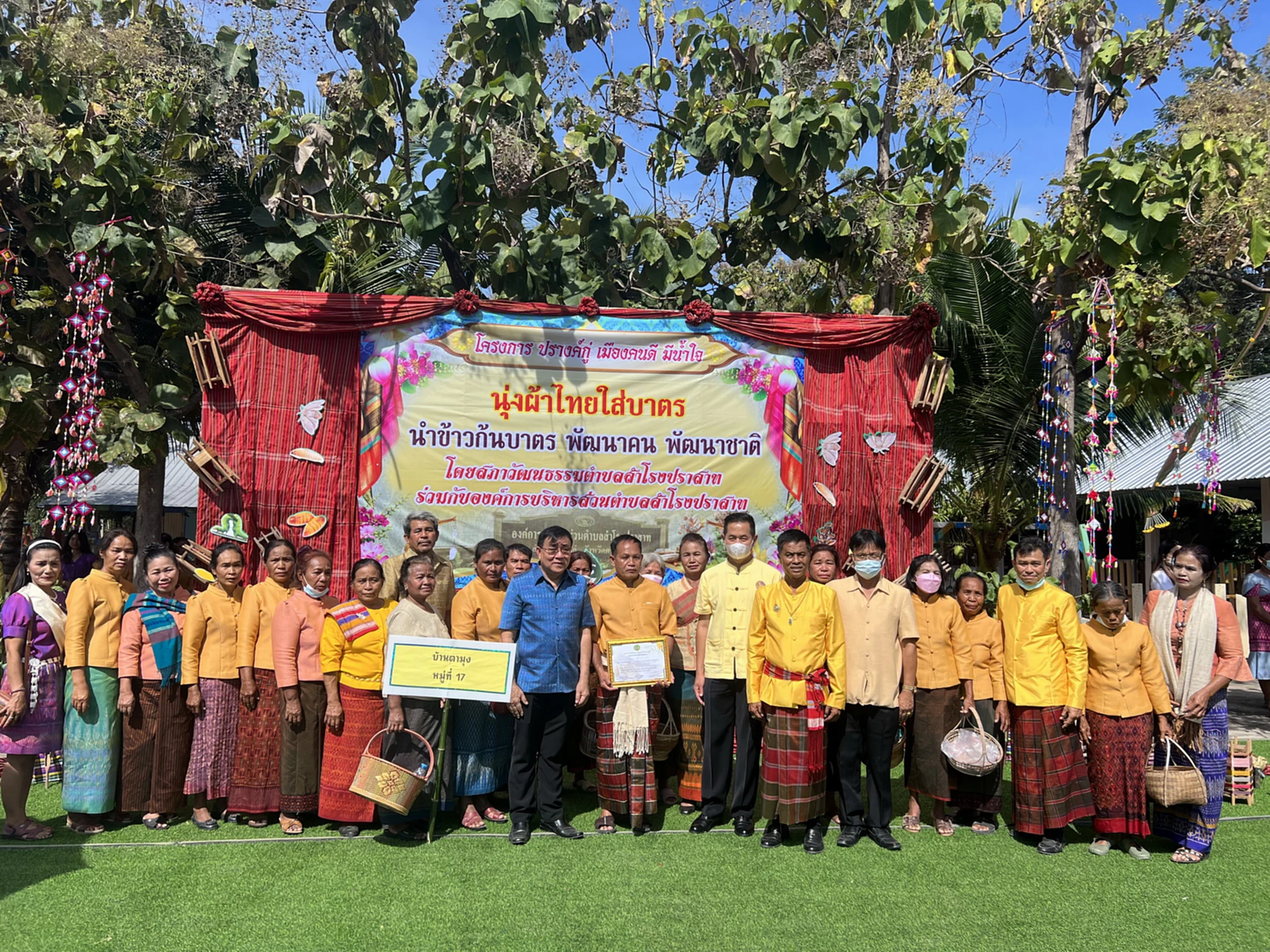 นายวิทยา ชัยเดชกำจร นายอำเภอปรางค์กู่ กล่าวว่า อบต.สำโรงปราสาทร่วมกับสภาวัฒนธรรม อบต.สำโรงปราสาท อ.ปรางค์กู่ ได้กำหนดจัดงานตามโครงการ “ปรางค์กู่เมืองคนดี มีน้ำใจ นุ่งผ้าไทยใส่บาตร นำข้าวกันบาตร พัฒนาคน พัฒนาชาติ” ประจำปี 2565 ขึ้นที่ บริเวณถนนด้านหน้า อบต.สำโรงปราสาท โดยมีวัตถุประสงค์เพื่ออนุรักษ์และส่งเสริมศิลปวัฒนธรรมและประเพณีอันดีงามของท้องถิ่น การส่งเสริมการท่องเที่ยวตามยุทธศาสตร์จังหวัดศรีสะเกษ และเผยแพร่สินค้าผลิตภัณฑ์ชุมชนให้เป็นที่รู้จักกันอย่างแพร่หลาย เพื่อกระจายรายได้สู่ชุมชน โดยข้าวสารอาหารแห้ง จะได้นำเอาไปมอบเพื่อให้การช่วยเหลือแก่ประชาชนที่ยากไร้ขาดแคลน ส่วนเงินรายได้จากการจัดงานครั้งนี้ จะได้เก็บรวบรวมไว้เพื่อนำเอาไปจัดสรรช่วยเหลือประชาชนที่ยากไร้ขาดแคลนในด้านต่าง ๆ ตามที่คณะกรรมการที่แต่งตั้งขึ้นจะพิจารณาอนุมัติให้การช่วยเหลือ เพื่อให้สมกับคำว่า อำเภอปรางค์กู่ เมืองคนดี มีน้ำใจ ช่วยเหลือชาวบ้านไร้ที่ยากไร้และขาดแคลนให้สามารถดำรงชีวิตอยู่ในสังคมได้อย่างมีความสุข ชาว อ.ปรางค์กู่ทุกคนจะต้องก้าวเดินไปด้วยกันและจะต้องอยู่อย่างมีความสุขด้วยกันทุกคน