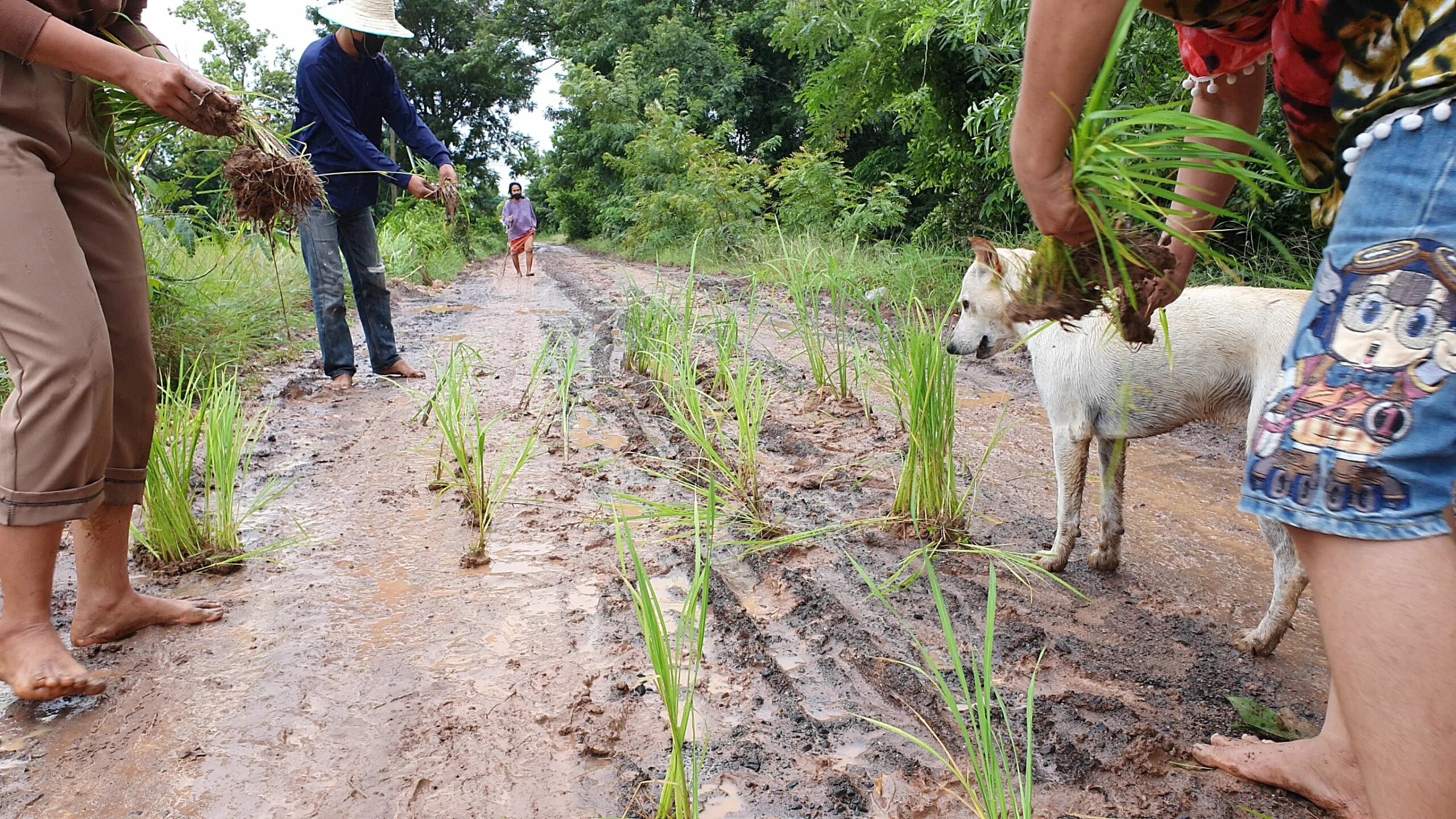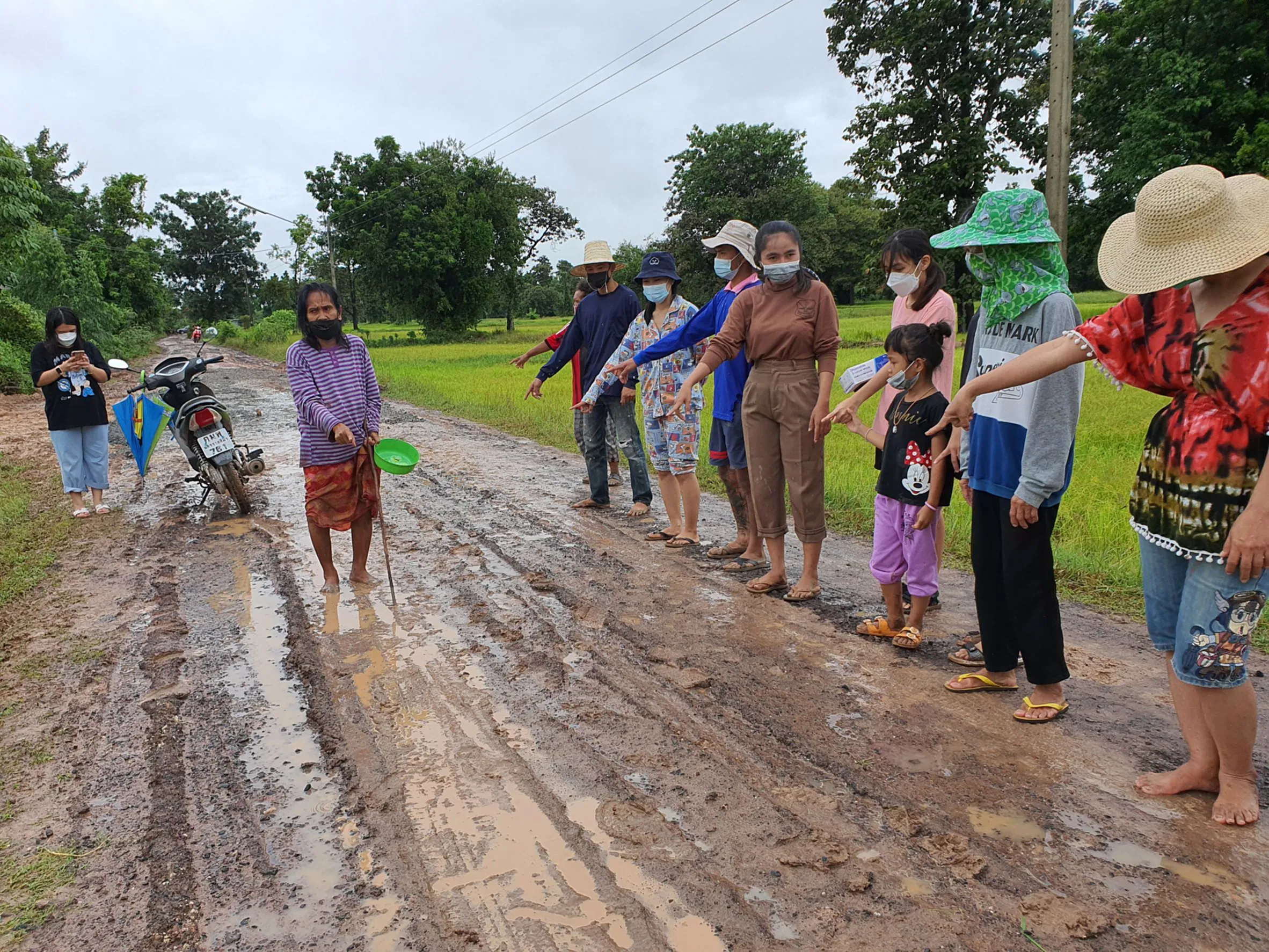 จากนั้นทีมข่าวจึงรุดลงพื้นที่ ตรวจสอบพบชาวบ้านประมาณ 10 คน ต่างพากันมาชี้ที่ถนนดังกล่าว พร้อมทั้งเห็นผู้สูงอายุนั่งลงที่ถนนนำขันน้ำมาตักน้ำที่ท่วมขังตามหลุมบ่อบนถนนอาบ ทั้งที่น้ำก็ขุ่นเละเป็นโคลน พร้อมพูดทั้งน้ำตาว่าเดือดร้อนมานานแล้ว ช่วยเข้ามาสนใจดูแลด้วย ชาวบ้านอีกส่วนก็นำต้นข้าวมาปลูกกลางถนน ซึ่งมีสภาพเป็นหลุมเป็นบ่อดินโคลนเละตลอดสายระยะทางกว่า 1 กิโลเมตร และมีน้ำขังเจิ่งนองตามหลุมน้อยใหญ่ ซึ่งเป็นการประชดถึงความเดือดร้อนที่ได้รับมาตลอดหลายปีที่ผ่านมา