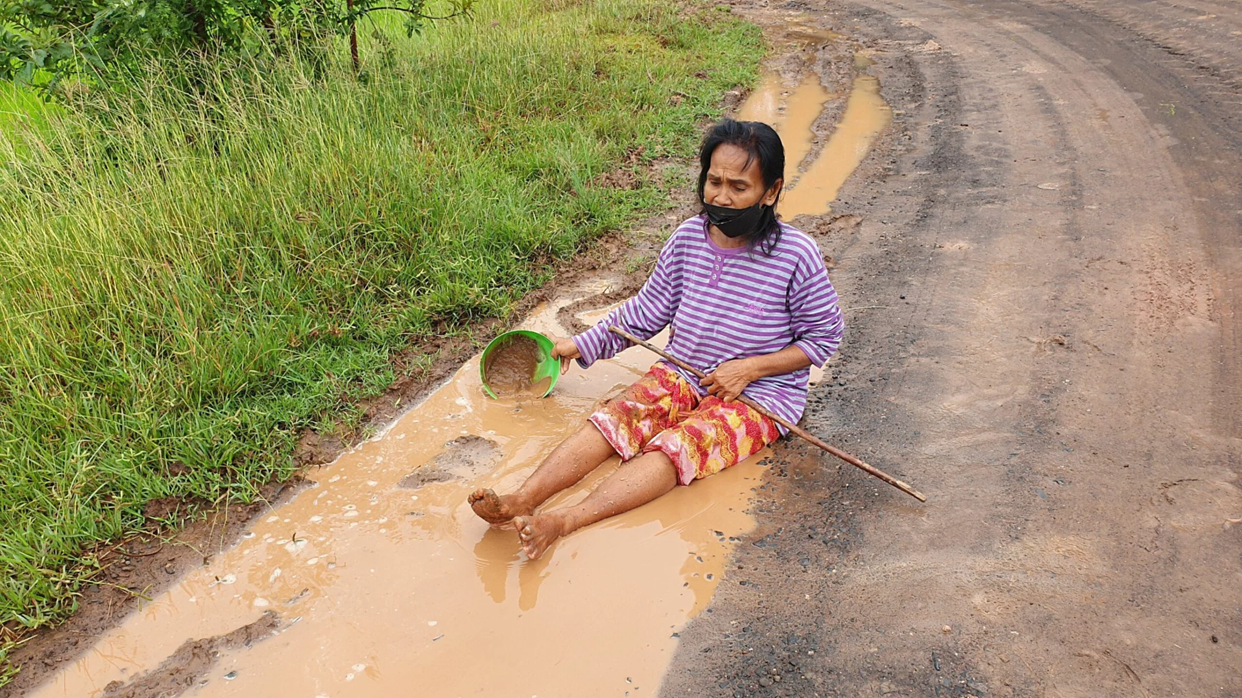 คุณยายสมพิศ ประดาอินทร์ อายุ 76 ปี ผู้ที่ลงตักน้ำโคลนอาบ กล่าวทั้งน้ำตาว่า ถนนเส้นดังกล่าวห่างจาก อบต.สัลกได เพียง 200 เมตร ที่ยายมาทำแบบนี้เพราะไม่รู้จะร้องยังไงแล้ว เดือนร้อนมากว่า 10 ปีแล้ว ขอนั่งอาบน้ำที่ถนนนี่แหละให้หน่วยงานเห็นจะได้มาทำถนนให้ซะที