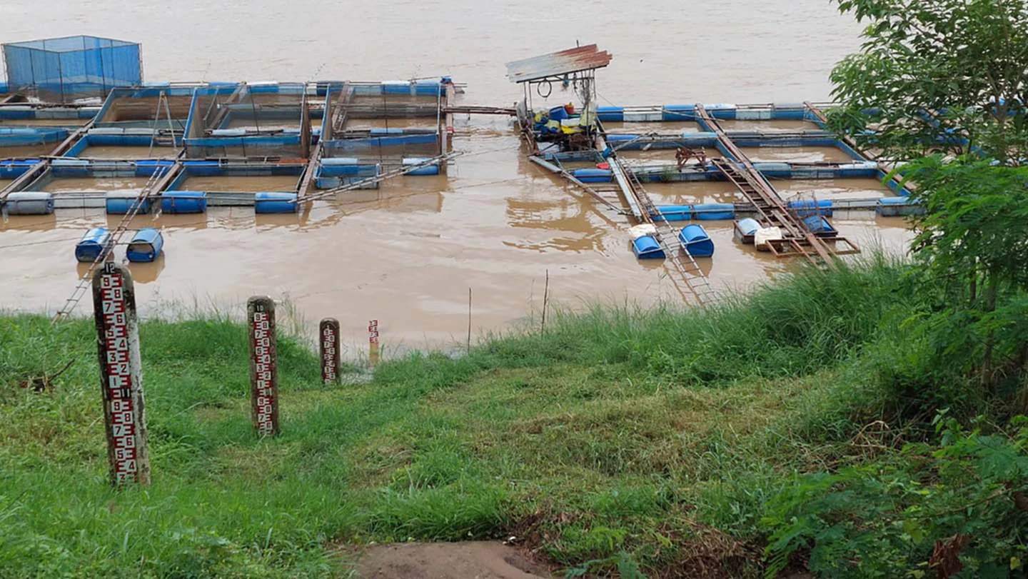 ด้านนาย ไพวัลย์ คำปัน ชาวบ้านที่เลี้ยงปลานิลในแม่น้ำโขง อายุ 52 ปี บ้านเลขที่ 184 หมู่ 3 บ้านโคกสูง ตำบลบางทรายใหญ่ อำเภอเมือง จังหวัดมุกดาหาร บอกว่า น้ำในแม่น้ำโขงขึ้นเร็ว มาเร็ว ทำให้ปลาในกระชังปรับสภาพไม่ทันน๊อคน้ำตาย ส่วนปลาที่ตายก็เอาไปทำปลาร้า ก่อนน้ำโขงสูงขึ้นก็ได้เตรียมการตัดหญ้าริมตลิ่ง เพื่อจะได้ดึงกระชังปลาขึ้นที่สูงได้ ซึ่งต้องออกมาดูกระชั่งปลาทุกวัน วันละหลายรอบ และต้องฟังข่าวสารเตือนจากทางราชการด้วย อีกทั้งต้องออกมาดูเช้าเที่ยวเย็น เพราะเดี๋ยวจะเอาไม่ทัน ถ้าน้ำมาเร็วเก็บกระชังไม่ทันปลาก็จะเสียหายได้ เพราะน้ำมาแรงทำให้ลวดสลิงขาดรับน้ำไม่ไหว ต้องหมั่นออกมาดูบ่อย ๆ