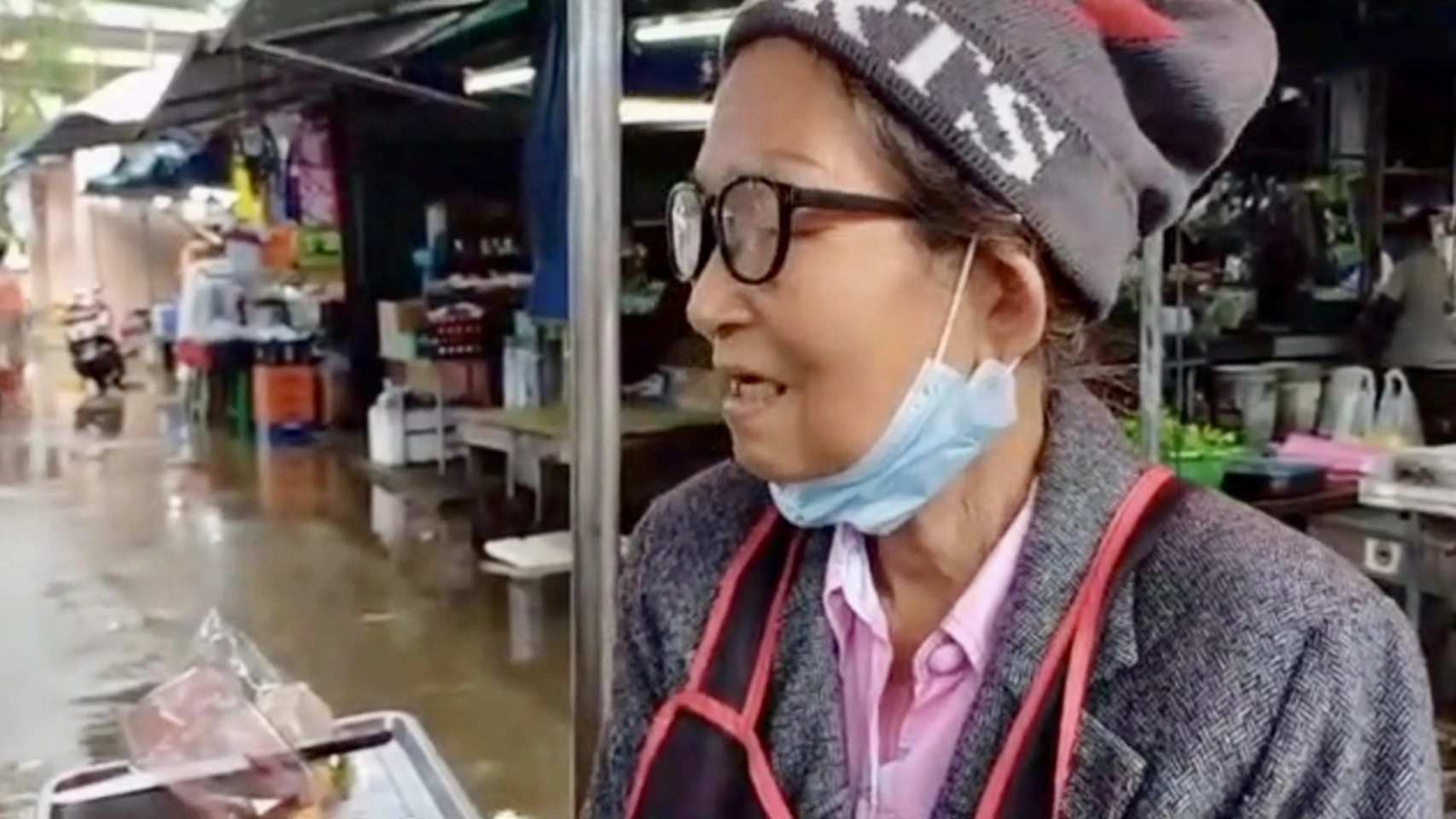 และที่ฟังแล้วเศร้ามาก เมื่อคุณยายลำไย มังกรแก้ว ในวัย 76 ปี นั่งขายปลาสดและผักต่างๆ ที่เก็บหามาจากรั้วบ้านตนเอง เล่าให้ผู้สื่อข่าวฯฟังว่า แย่มากๆ ขี่รถมอเตอร์ไซค์พ่วงข้างตากฝนมาตั้งแต่ตีสามกว่าๆ พอมาถึงตลาดสดหัวสำโรงช่วงตีสี่ฝนก็ยังไม่หยุดตกขายของไม่ได้ คงต้องนั่งสั่นลุ้นถึงเก้าโมงเช้าต่อไปว่าจะขายได้ไหม จะเห็นว่าพ่อค้าแม่ขายทุกคนตัดพ้อชีวิตที่เป็นเพียงคนหาเช้ากินค่ำต้องเผชิญฝนที่ตกเทสองวันติดจนเช้าวันนี้ ไหนจะเริ่มมีคนต่างกังวลในโควิดที่มีข่าวออกตามสื่อต่างๆในช่วงนี้เหมือนว่าโควิดจะกลับมาอีกแล้ว แต่พ่อค้าแม่ขายก็ต่างพยามให้กำลังใจตนเองและอยากให้ชาวบ้านออกมาเลือกซื้ออุดหนุนกันเหมือนเดิม