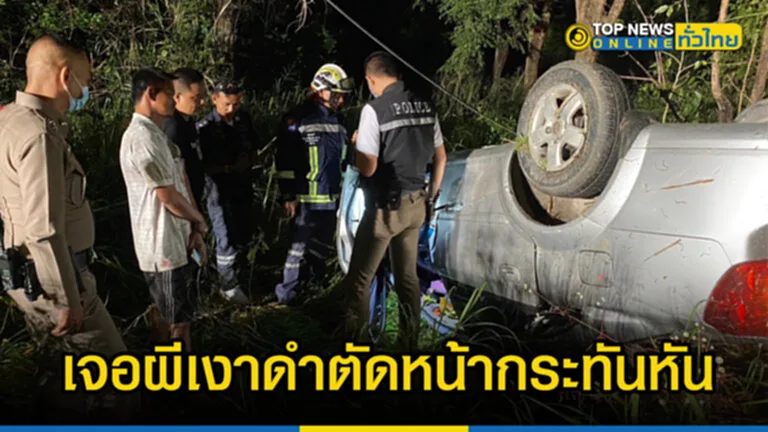 ระหว่างขับรถเดินทางกลับบ้าน ปรากฎว่าพบเงามืดคล้ายคน พุ่งมาตัดหน้าในระยะกระชั้นชิด ด้วยความตกใจจึงหักหลบ ก่อนที่จะเสียหลักพุ่งลงป่าข้างทาง ทำให้ตัวรถหมุนหลายตลบ จนอยู่ในสภาพล้อชี้ฟ้าดังกล่าว โดยเจ้าตัวยอมรับว่า ดื่มสุรามาและมีอาการเมาสุรา ส่วนเงามืดคล้ายคน เชื่อเป็นผีเจ้าที่เล่นงาน
