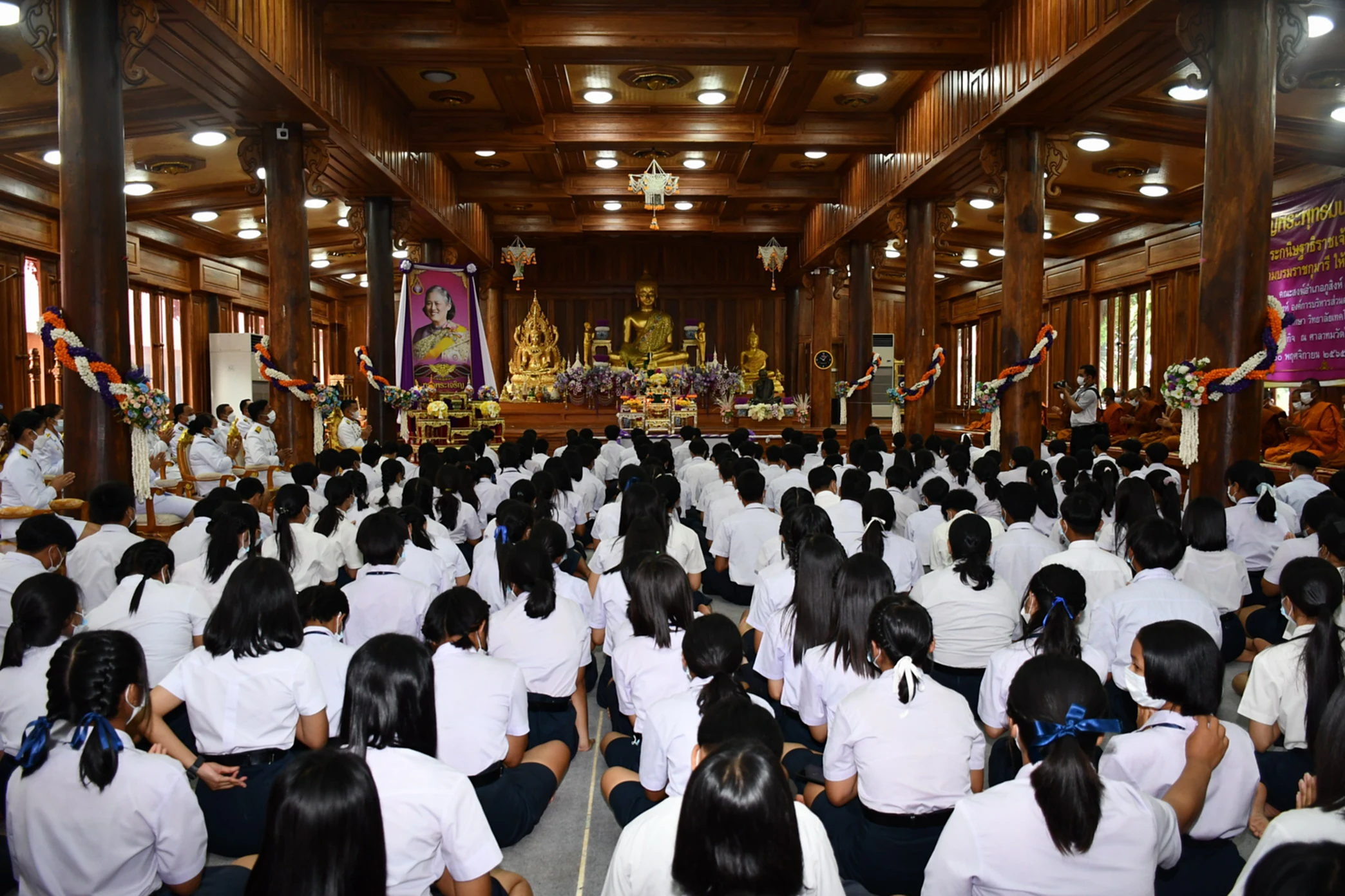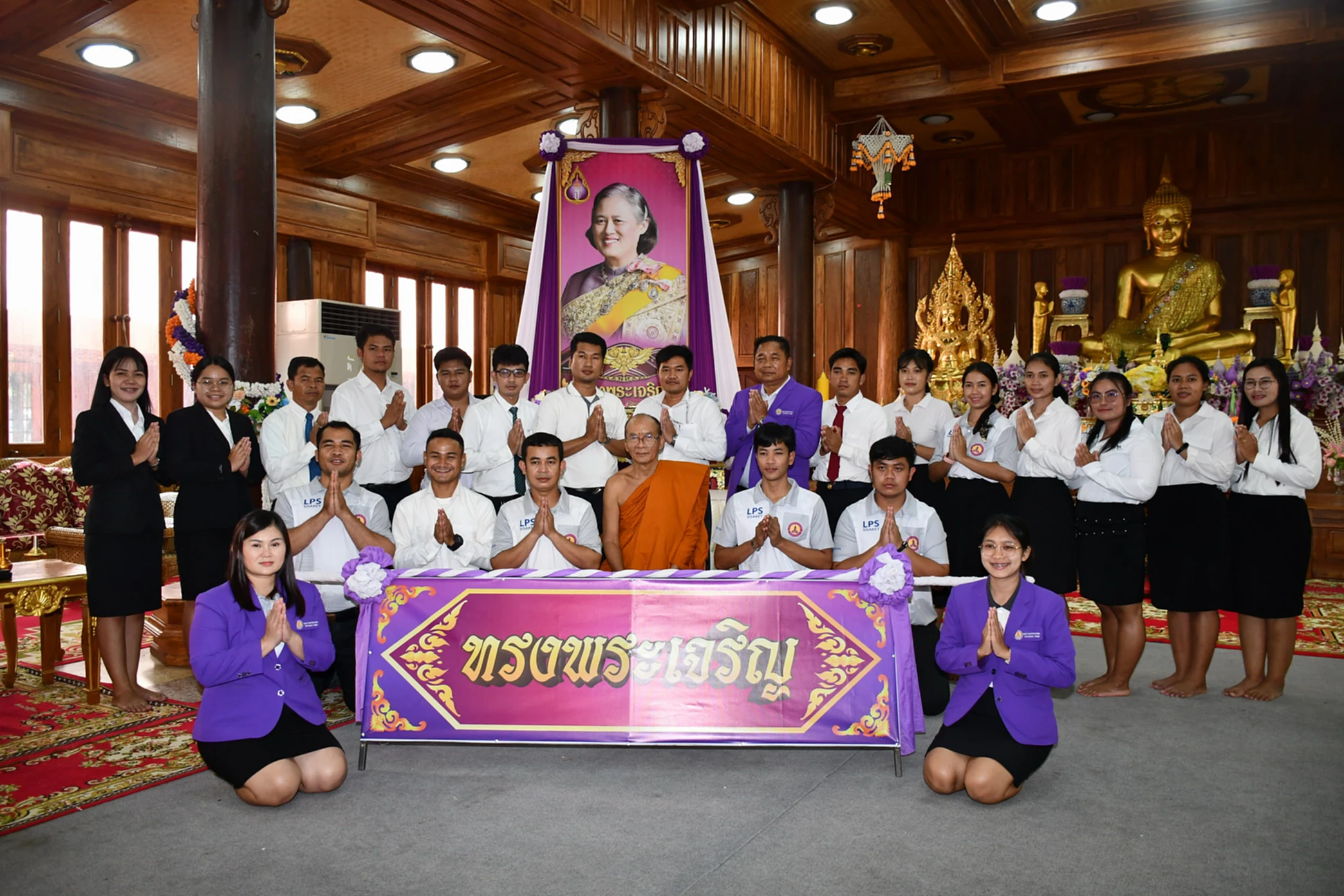 เมื่อเวลา 09.30 น. วันที่ 30 พฤศจิกายน 2565 ผู้สื่อข่าวรายงานว่า ที่ศาลาทม วัดไพรพัฒนา ต.ไพรพัฒนา อ.ภูสิงห์ จ.ศรีสะเกษ พระครูโกศลสิกขกิจ หรือหลวงพ่อพุฒ วายาโม เจ้าคณะอำเภอภูสิงห์ (ธรรมยุต) ได้นำคณะสงฆ์อำเภอภูสิงห์ (ธรรมยุต) พร้อมด้วย พสกนิกรอำเภอภูสิงห์ อบต.ไพรพัฒนา กำนัน ผู้ใหญ่บ้าน คณาจารย์ เจ้าหน้าที่ นักศึกษาวิทยาลัยเทคโนโลยีหลวงปู่สรวงวัดไพรพัฒนา ประกอบพิธีเจริญพระพุทธมนต์ถวายพระพรแด่ สมเด็จพระกนิษฐาธิราชเจ้า กรมสมเด็จพระเทพรัตนราชสุดาฯ สยามบรมราชกุมารี ให้ทรงมีพระพลานามัย แข็งแรง โดยมีการร่วมกันนั่งสมาธิตั้งอธิษฐานจิต การถวายจตุปัจจัยไทยธรรมแด่พระสงฆ์ การลงนามถวายพระพร โดยมี พระครูสิริวินัยวัฒน์ เจ้าคณะอำเภอเมืองศรีสะเกษ (ธรรมยุต) เป็นประธานฝ่ายสงฆ์ พระครูสิริรัตนาภรณ์ เจ้าคณะอำเภอกันทรลักษ์ (ธรรมยุต) ร่วมนำคณะสงฆ์เจริญพระพุทธมนต์ และมี นายสรพงษ์ ชายแก้ว ปลัดอาวุโสอำเภอภูสิงห์ ได้รับมอบหมายจาก นายอำเภอภูสิงห์ เป็นประธานฝ่ายฆราวาส พร้อมด้วย นายสำเร็จ ไพรบึง นายก อบต.ไพรพัฒนา นายบุญมี เสนคราม กำนัน ต.ภูสิงห์ ข้าราชการ พ่อค้า ประชาชนชาว อ.ภูสิงห์ มาร่วมพิธีจำนวนมาก