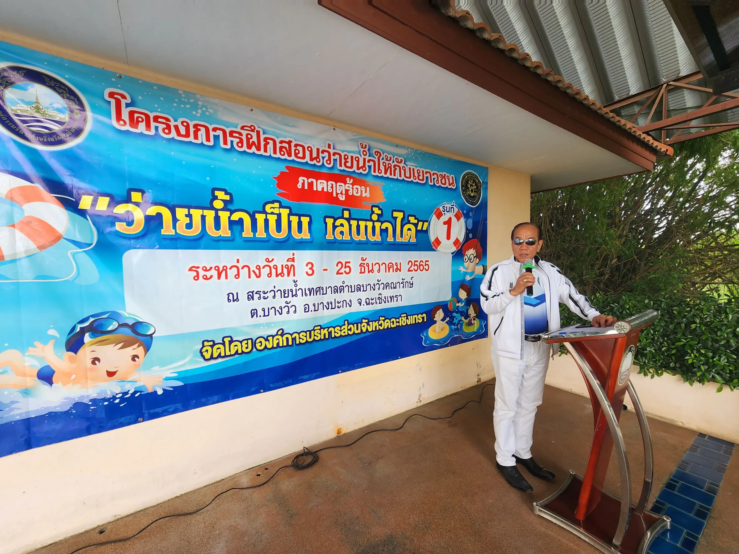 วันที่ 3 ธ.ค. 2565 นายกิตติ เป้าเปี่ยมรัพย์ นายก อบจ.ฉะเชิงเทรา มอบหมายให้นายธนพัฒน์ เจียรสถิต เลขานุการนายก อบจ.ฉะเชิงเทรา เป็นประธานเปิดโครงการฝึกสอนว่ายน้ำให้กับเยาวชน ภาคฤดูร้อน”ว่ายน้ำเป็น เล่นน้ำได้” รุ่นที่ 1 พร้อมด้วยคณะผู้บริหาร หัวหน้าส่วนราชการ ผู้บริหารสถานศึกษา แขกผู้มีเกียรติ และผู้ปกครอง ร่วมพิธีเปิดโครงการ ณ สระว่ายน้ำเทศบาลตำบลบางวัวคณารักษ์ ต.บางวัว อ.บางปะกง จ.ฉะเชิงเทรา