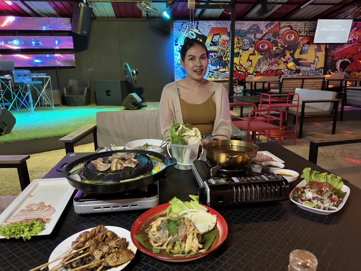 นอกจากนี้ทางร้านยังมีเมนูอาหารอีกมากมาย อาทิ เมนูยำ เมนูส้มตำ เมนูลาบ เมนูต้มยำ เมนูอาหารจานเดียว และเมนูหมาล่าปิ้งย่าง และเต็มอิ่มกับการเชียร์ฟุตบอลโลกที่กำลังทำการแข่งขันอยู่ในขณะนี้