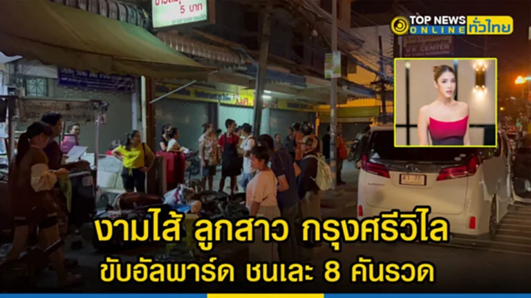 งามไส้ แอล กมลวรรณ (ลูกสาว กรุงศรีวิไล) ขับอัลพาร์ด ชนเละ รถยนต์ 2 คัน มอไซค์ 6 คันเสียหาย โชคดีไร้ผู้บาดเจ็บ