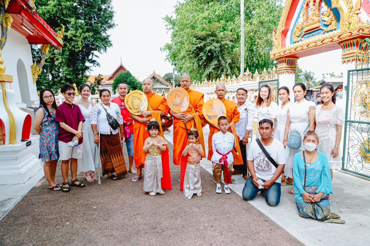 การจัดงานบรรยากาศเป็นไปอย่างเรียบง่ายตามประเพณี มีการโกนหัว ทำขวัญ แห่นาครอบตัวชุมชนบ้านหัวสำโรง ก่อนเข้าวนพระอุโบสถ ต้องบอกเลยว่า ชาวบ้าน ญาติสนิท มิตรสหายเกือบหนึ่งพันคนเนืองแน่น เรียกว่าติดขอบกำลังใจ ด้วยนายชนะ เบ็ญพาด อายุ 60 ปี พิการขาซ้ายต้องใช้ไม้ค้ำ นางกนกนิภา เบ็ญพาด อายุ 62 ปี พิการขาซ้ายหมอทำการผ่าตัดขาทิ้ง เป็นสองผัวเมีย ถึงจะขาพิการมาอย่างยาวนานถึง 49 ปี แต่เป็นคนสู้ชีวิตไม่ยอมแพ้ต่อโชคชะตา สู้ฟันฝ่าด้วยลำแข้ง และเอื้อเฟื้อพืชผักให้เพื่อนบ้าน จนชาวบ้านทั้งตำบลหัวสำโรงต่างรักในครอบครัวนี้ที่ถือเป็นแบบอย่างที่ดี