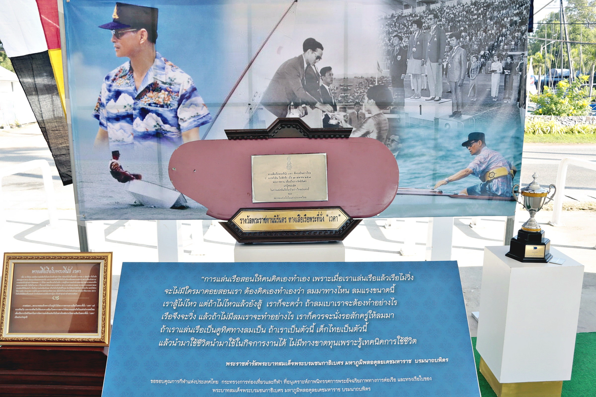 โดย พระบาทสมเด็จพระบรมชนกาธิเบศร มหาภูมิพลอดุลยเดชมหาราช บรมนาถบพิตร ทรงโปรดกีฬาเรือใบเป็นพิเศษและทรงมีพระปรีชาสามารถในการแล่นใบ รวมทั้งมีพระอัจฉริยภาพในการต่อเรือใบด้วยพระองค์เอง ทรงต่อเรือขึ้นมาอีกลำหนึ่งเป็นเรือใบประเภท โอเค พระราชทานนามเรือว่า “VEGA” หรือ เวคา (เป็นชื่อดาวที่สุกใสดวงหนึ่ง) ทรงใช้เรือลำนี้เสด็จฯ ข้ามอ่าวไทยจากพระราชวังไกลกังวลหัวหินไปขึ้นฝั่งที่หาดเตยงามในหน่วยบัญชาการนาวิกโยธิน เมื่อวันที่ 19 เมษายน 2509 ซึ่งต่อมาทรงพระกรุณาโปรดเกล้าฯ พระราชทานหางเสือเรือเวคาเพื่อเป็นรางวัลนิรันดรในการแข่งขันเรือใบระยะทางไกลของประเทศไทย