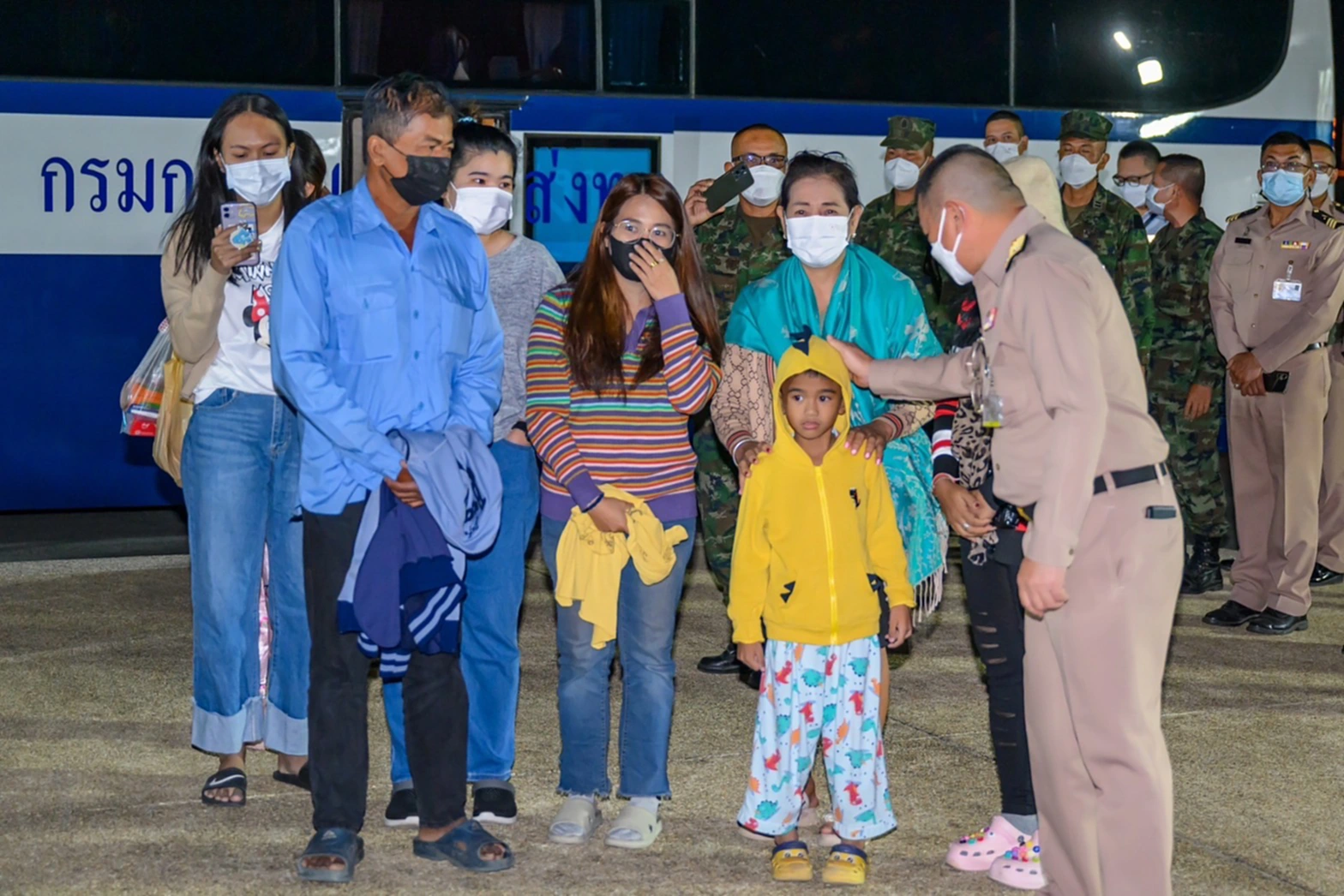 กำลังพลเรือหลวงสุโขทัย 54 นาย ที่รอดชีวิตเดินทางถึงสัตหีบ ครอบครัวเพื่อนโผเข้ากอดด้วยความดีใจ
