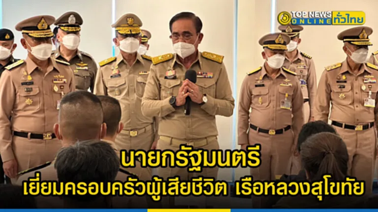 ล่าสุดวันนี้ (22 ธ.ค. 65) พล.อ.ประยุทธ์ จันทร์โอชา นายกรัฐมนตรีและรัฐมนตรีกลาโหม พร้อมคณะ เดินทางมาเยี่ยมบำรุงขวัญกำลังพลและครอบครัวที่ยังค้นหาไม่เจอ ภายในศูนย์ประสานงานช่วยเหลือกำลังพลเรือหลวงสุโขทัย โดยมีพลเรือเอก เชิงชาย ชมเชิงแพทย์ ผู้บัญชาการทหารเรือ และข้าราชการกองทัพเรือ ร่วมให้การต้อนรับและชี้แจงความคืบหน้าการค้นหากำลังพลที่สูญหายอีก 23 นาย