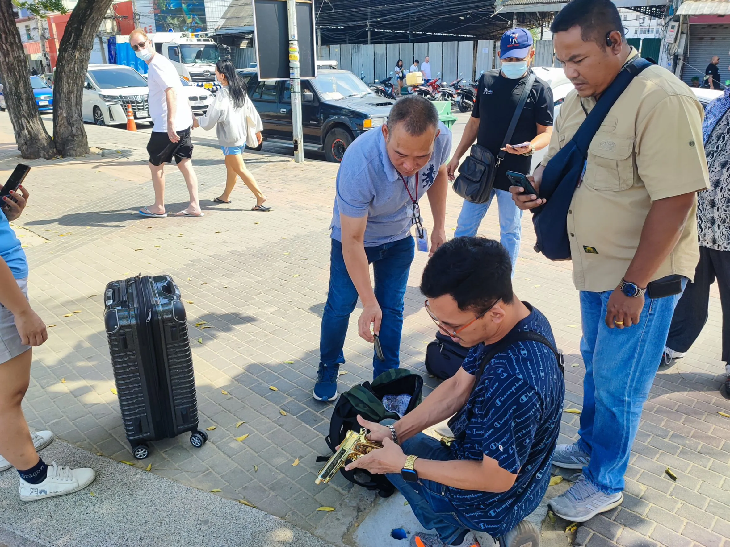 เวลา 13.30 น. ของวันที่ 24 ธ.ค.65 ร.ต.อ.ดอกรัก สายโรจน์ รอง สว.สืบสวน สภ.เมืองพัทยา พร้อมด้วยเจ้าหน้าที่ตำรวจชุดสืบสวน ตำรวจชุดสืบสวนตำรวจท่องเที่ยวเมืองพัทยา เข้าตรวจค้นชาวต่างชาติต้องสงสัยพกอาวุธปืนเดินอยู่บริเวณชายหาดพัทยา ถนนเลียบชายหาดพัทยาใต้ เมืองพัทยา จ.ชลบุรี