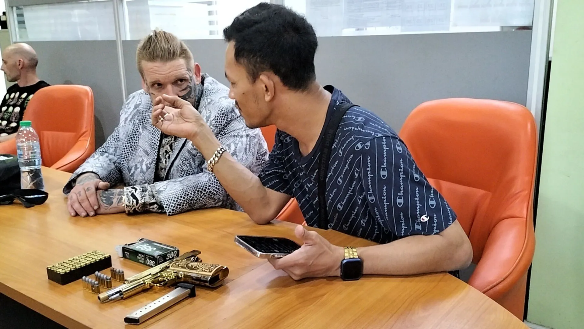 จากการสอบสวนทราบชื่อ Mr.Engstrom Mattias อายุ 43 ปี ชาวสวีเดน เดินทางเข้ามาประเทศไทยวันที่ 18 ธ.ค.65 ที่ผ่านมา โดย Mr.Engstrom ยอมรับสารภาพว่า ปืนดังกล่าวและเครื่องกระสุนปืนเป็นของตนเอง แต่อ้างว่า เจอในกล่องพลาสติกที่หน้าอะโกโก้ ภายในวอร์คกิ้งสตรีทจึงเก็บมาแล้วมาถูกจับกุม จากนั้นได้ทำการตรวจหาสารเสพติดซึ่งพบว่า มีสารเสพติดในร่างกาย