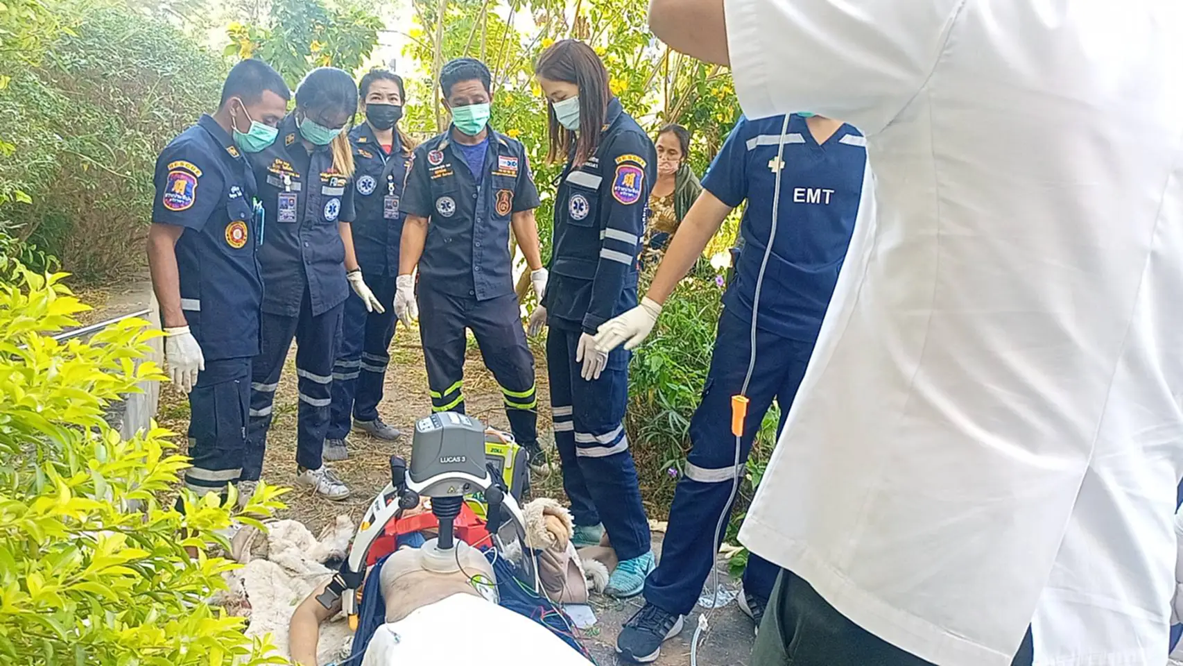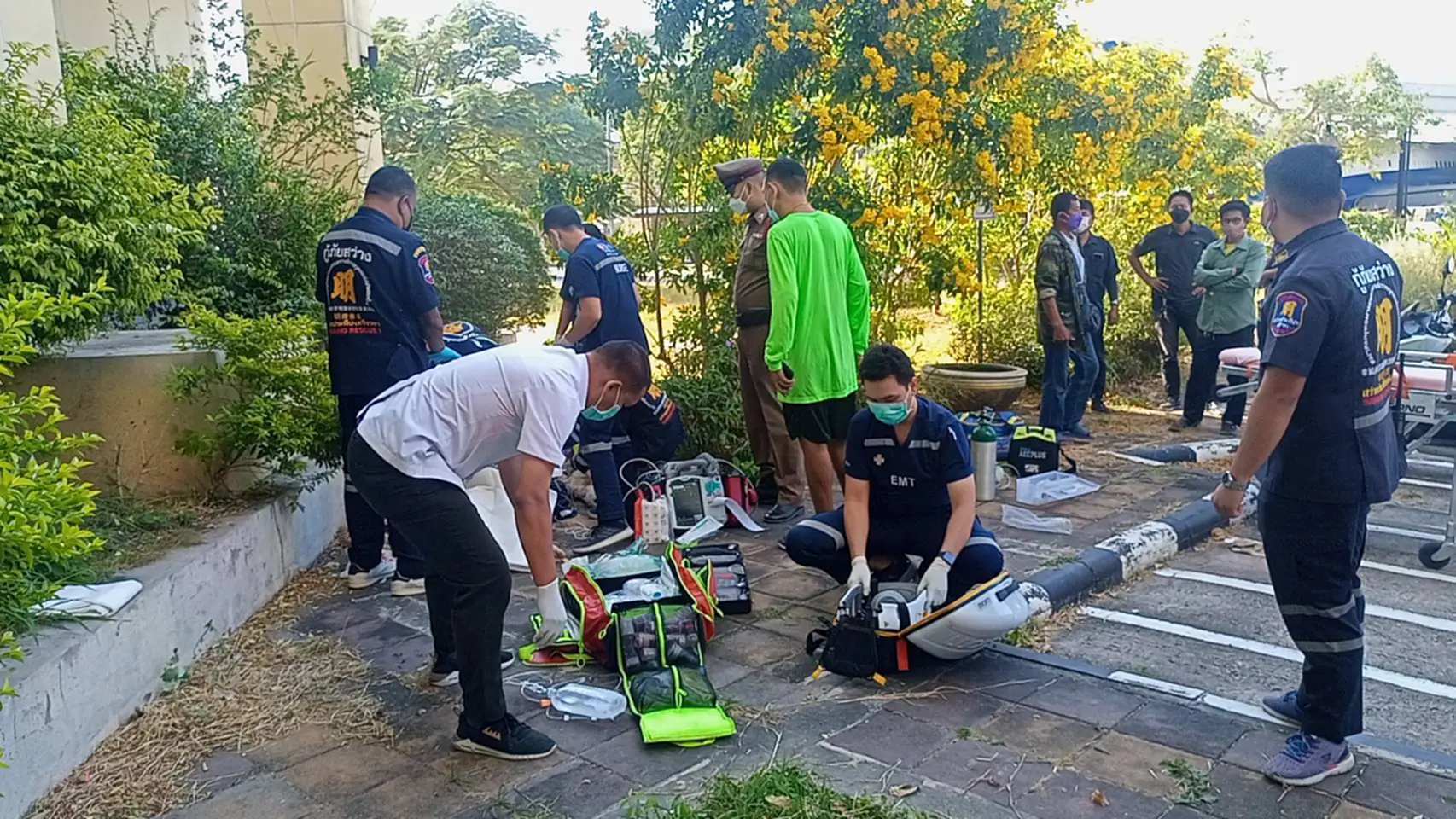 จากการสอบถามนางสาว อุ่นเรือน คงต๊ะ อายุ47ปี แม่บ้าน ตึกดั่งกล่าว เล่าเหตุการณ์ในขณะนั้นตัวหนึ่งกำลังทำความสะอาดอยู่บริเวณชั้นล่างได้ยินเสียงคล้ายมีของตกลงมาดังตุ๊บ จึงได้ชะโงกหัวออกมาดูก็พบว่ามีร่างของผู้หญิงตกอยู่บริเวณพุ่มไม้ ในช่วงเวลา 08.00น. หลังจากนั้นตัวเองได้โทรแจ้งเจ้าหน้าที่กู้ภัยให้ทำการช่วยเหลือ