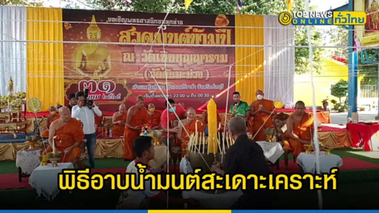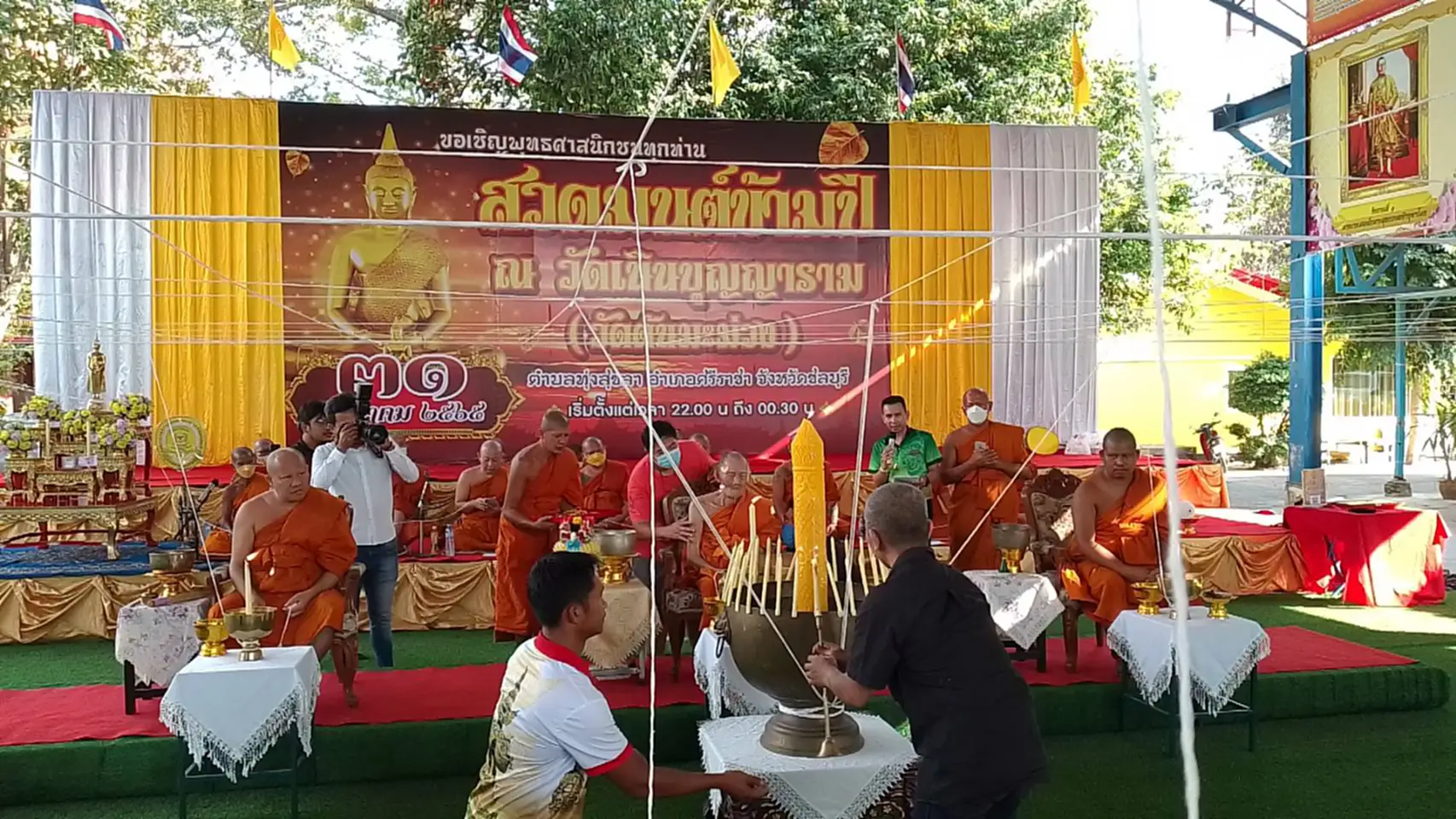 วันที่ (25 ธ.ค.65) เวลาประมาณ 15.00 น. ที่ลานธรรมวัดเนินบุญญาราม(วัดต้นมะม่วง) ต.ทุ่งสุขลา อ.ศรีราชา จ.ชลบุรี มีพิธีสะเดาะเคราะห์ด้วยการอาบน้ำมนต์ยกถัง ซึ่งมีหลวงปู่ฮก รตินฺธโร วัดราษฎร์เรืองสุข- มาบลำบิดยอดเกจิภาคตะวันออก พระครูมธุรสธรรมภาณ รองเจ้าคณะอำเภอรูปที่2 เจ้าอาวาสวัดรังษีสุทธาวาส(วัดไร่กล้วย) และบรรดาเกจิอาจารย์จากหลายอำเภอศรีราชาอีกจำนวน17รูป ร่วมทำพิธี เรียกพิธีนี้ว่า การอาบน้ำมนต์ เป็นการอาบน้ำมนต์หมู่ ซึ่งมีประชาชนเดินทางมาร่วมพิธี 200 คน แต่ละคนจะได้รับน้ำมนต์ คนละ 1 ถัง ในพิธีคนที่เตรียมเสื้อผ้ามาก่อนแล้วได้มีโอกาสไปเปลี่ยนเสื้อผ้า แต่คนที่ไม่ได้เตรียมเสื้อผ้ามาก็ต้องกลับบ้านทั้งที่ตัวเปียกปอนกันเป็นแถว นับเป็นการอาบน้ำมนต์สะเดาะเคราะห์หมู่ครั้งแรก เพื่อเรียกขวัญและกำลังใจให้กับชาวบ้านที่ประสบปัญหาต่างๆ รุมเร้า ไม่ว่าจากคน สัมภเวสี หน้าที่การงาน และสัตว์ทั้งหลาย