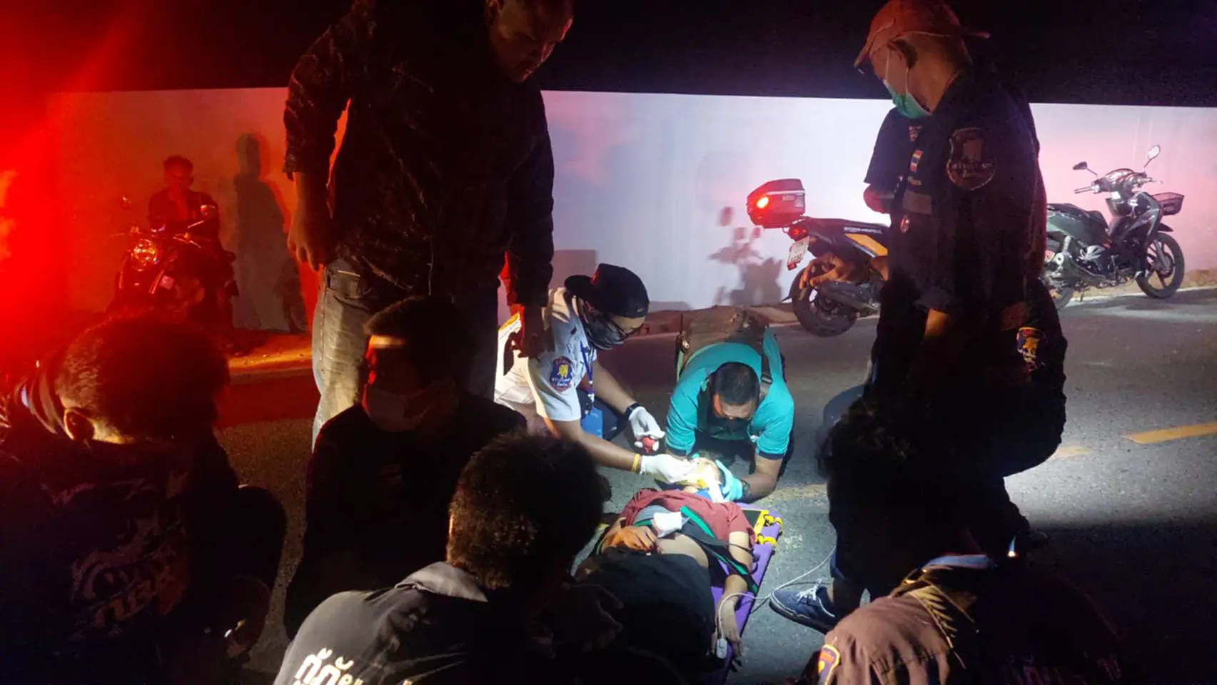 ที่เกิดเหตุพบรถยนต์ เก๋ง โตโยต้า โคโรน่า หมายเลขทะเบียน มช 5797 กทม. ซึ่งเป็นรถแท็กซี่ ในสภาพเสียหลักลงข้างทาง มีผู้ได้รับบาดเจ็บเป็นหญิง ทราบชื่อน.ส.วรรณรัตน์ บำรุงอินทร์ อายุ45ปี ไม่รู้สติ ได้รับบาดเจ็บมเจ้าหน้าที่ได้ช่วยเหลือนำตัวส่ง รพ.สมเด็จพระนางเจ้าสิริกิติ์ กรมแพทย์หทาเรือ