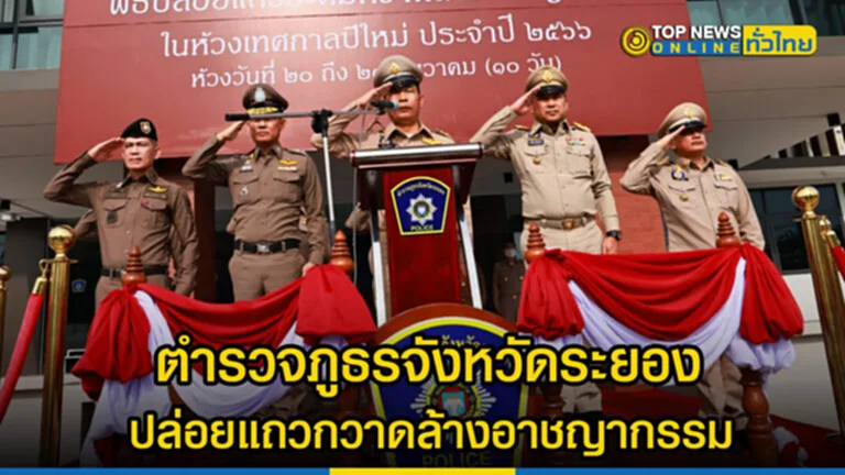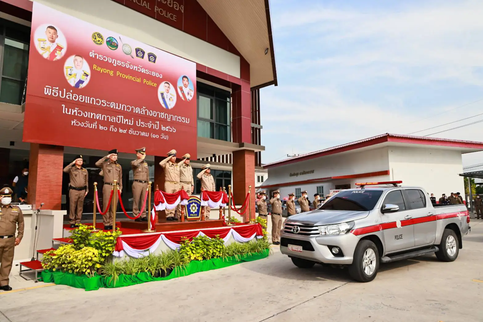 เวลา 09.00 น.วันที่ 27 ธ.ค.นายไตรภพ วงศ์ไตรรัตน์ ผู้ว่าราชการจังหวัดระยอง เป็นประธานปล่อยเจ้าหน้าที่ที่เกี่ยวข้อง โดยมี พลต.ต.พงศ์พันธ์ วงศ์มณีเทศ ผบก.ภ.จว.ระยอง นำเจ้าหน้าที่ตำรวจในสังกัดตำรวจภูธรจังหวัดระยองรวม 16 สถานี และเจ้าหน้าที่ฝ่ายปกครอง ตำรวจท่องเที่ยว ทางหลวง อาสาสมัครตำรวจ และกู้ภัย 200 นาย ระดมกำลังกวาดล้างอาชญากรรมในห้วงของเทศกาลปีใหม่ 2566