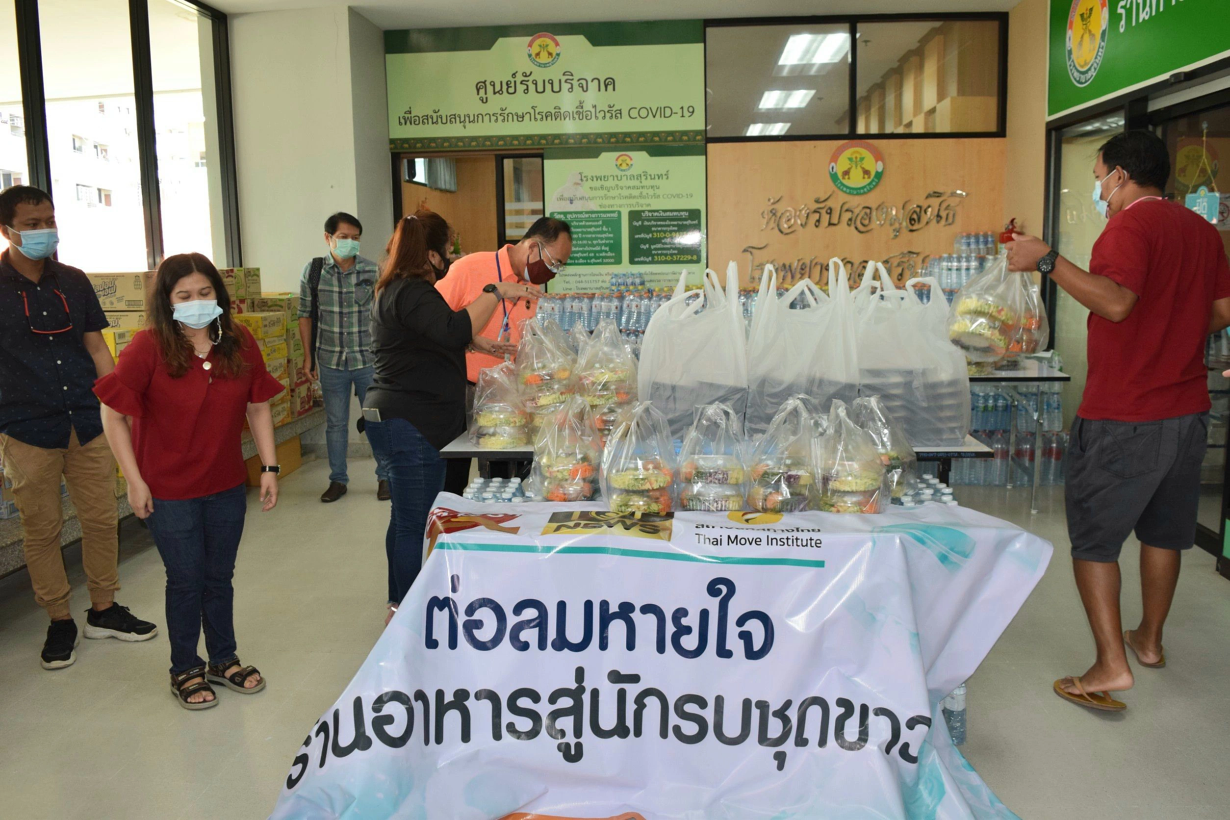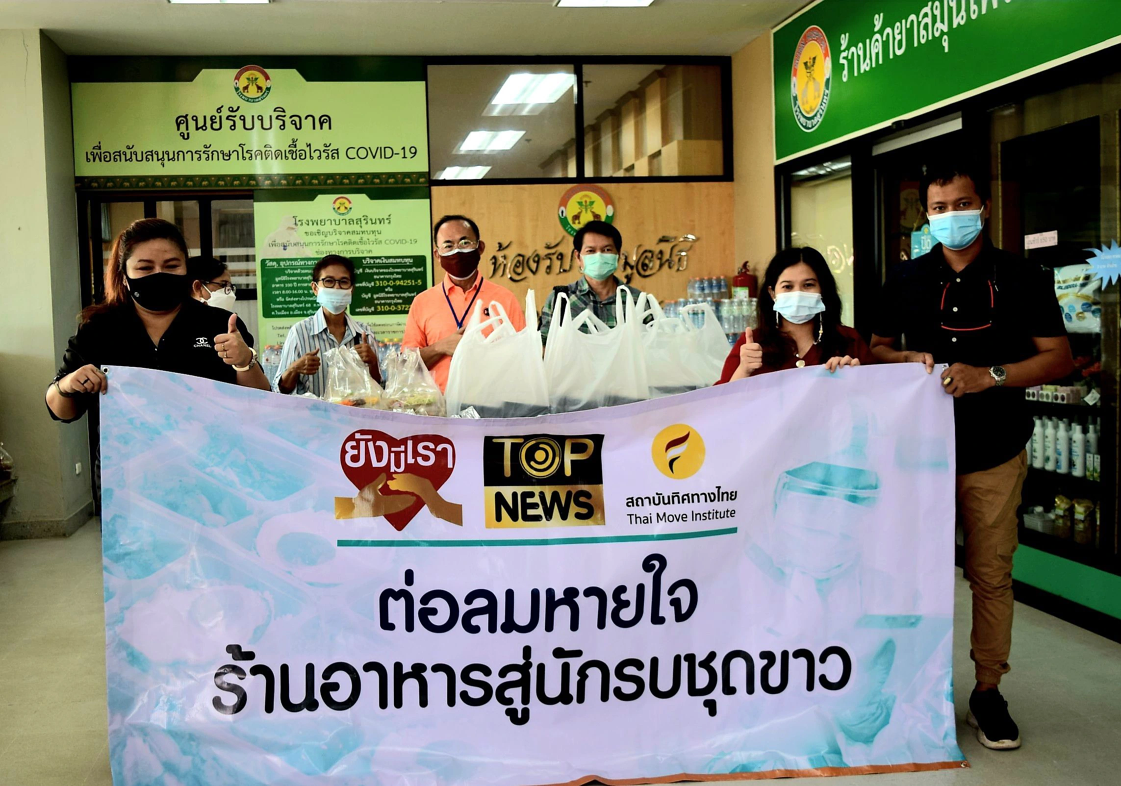 และต่อมาในเวลา 11.00 น. ที่ตึก 100 ปี โรงพยาบาลสุรินทร์ ผู้อำนวยการศูนย์ข่าว TOP NEWS ภาคตะวันออกเฉียงเหนือ ตัวแทนสถานีโทรทัศน์ TOP NEWS ทีวี ได้มอบหมายให้ น.ส.รมิตา สิงหเสรี และนายกฤษดากร กีรติธำรงเจริญ ผู้สื่อข่าวภูมิภาค จ.สุรินทร์ เป็นตัวแทนมอบอาหารข้าวกล่อง ซึ่งมีเมนูข้าวคลุกกะปิ, ข้าวยำ, ข้าวปีกไก่ทอด จำนวน 200 กล่อง ให้บุคลากรทางการแพทย์ ที่ รพ.สุรินทร์ เพื่อเป็นขวัญและกำลังใจให้กับบุคลากรทางการแพทย์ทุกคน ที่ทำงานหนักและเหน็ดเหนื่อย กับการรับมือการแพร่ระบาดของโรคโควิด-19 ระลอกใหม่ โดยมี นพ.เฉลียว สัตตมัย รองผู้อำนวยการกลุ่มภารกิจด้านกิจกรรมพิเศษโรงพยาบาลสุรินทร์ เป็นผู้รับมอบ