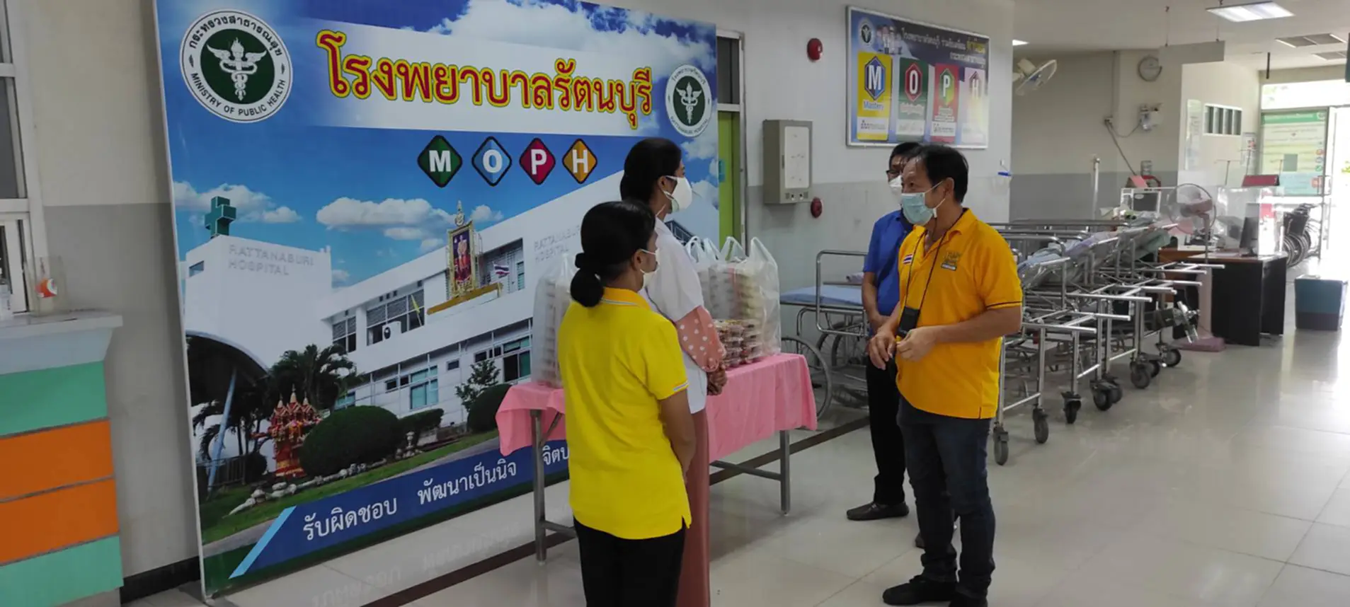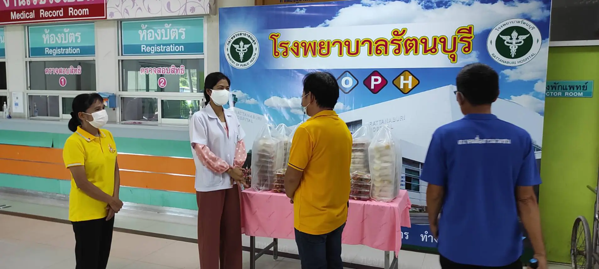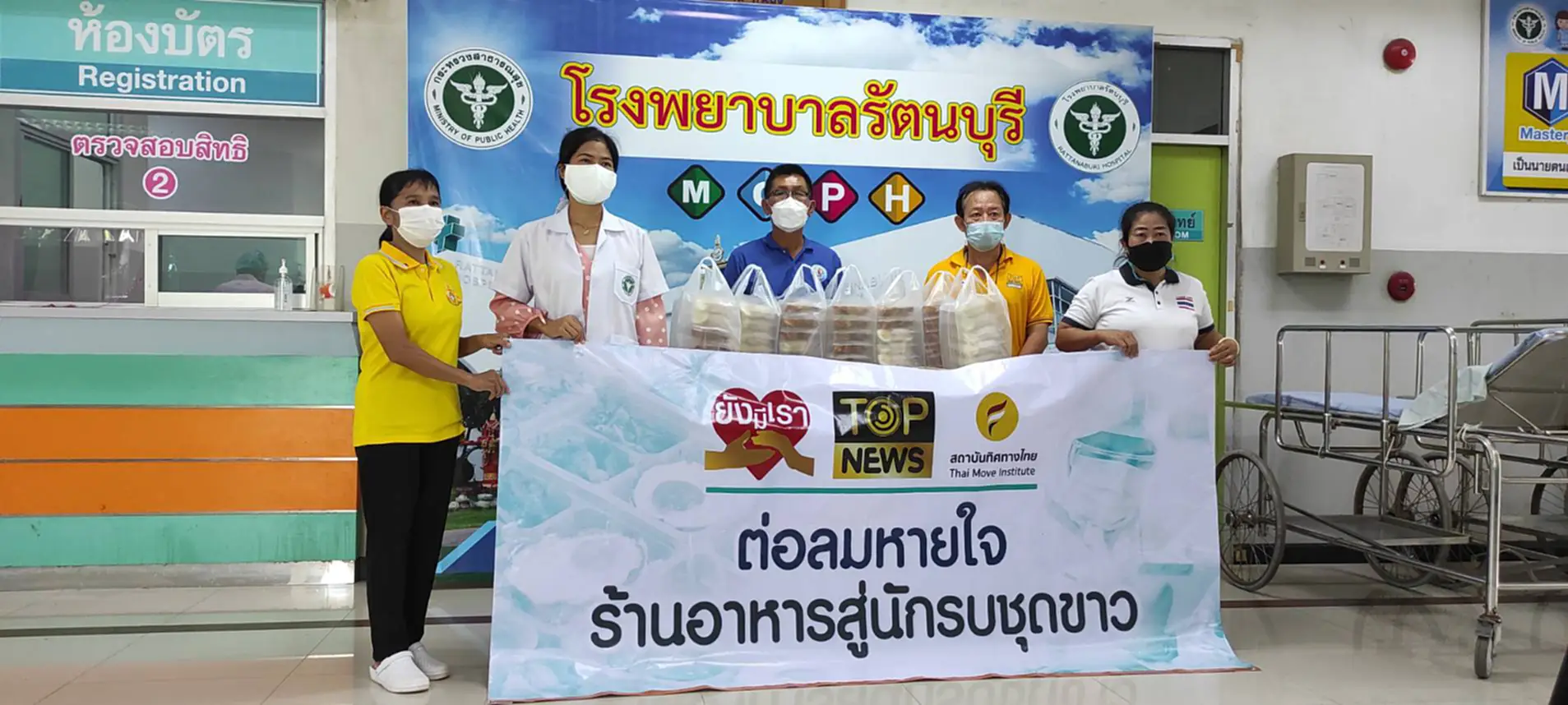 วันนี้(1 ส.ค.2564) เมื่อเวลา 09.30 น. ที่โรงพยาบาลรัตนบุรี อ.รัตนบุรี จ.สุรินทร์ นายชูชัย ดำรงสันติสุข ผู้อำนวยการศูนย์ข่าว TOP NEWS ภาคตะวันออกเฉียงเหนือ ได้รับมอบหมายจาก สถานีโทรทัศน์ TOP NEWS ทีวี ให้เป็นตัวแทนนำอาหารข้าวกล่อง ที่ได้รับบริจาคจากแฟนรายการข่าว TOP NEWS ในโครงการ “ต่อลมหายใจ ร้านอาหาร สู่นักรบชุดขาว” ไปมอบให้กับบุคลากรทางการแพทย์ที่ดูแลผู้ป่วยโควิด-19 จำนวน 100 กล่อง โดยมี พญ.จุฑารัตน์ บุตรดีขันธ์ ผอ.รพ.รัตนบุรี เป็นผู้รับมอบ ซึ่งมีเมนูอาหารดังนี้ ข้าวสวยร้อนๆ พร้อมไก่ทอดสมุนไพร ปลาร้าสุกทรงเครื่อง ผักเพื่อสุขภาพ และไข่ต้ม 1 ฟอง เพื่อเป็นกำลังใจแทนความห่วงใยจากประชาชนทุกคน