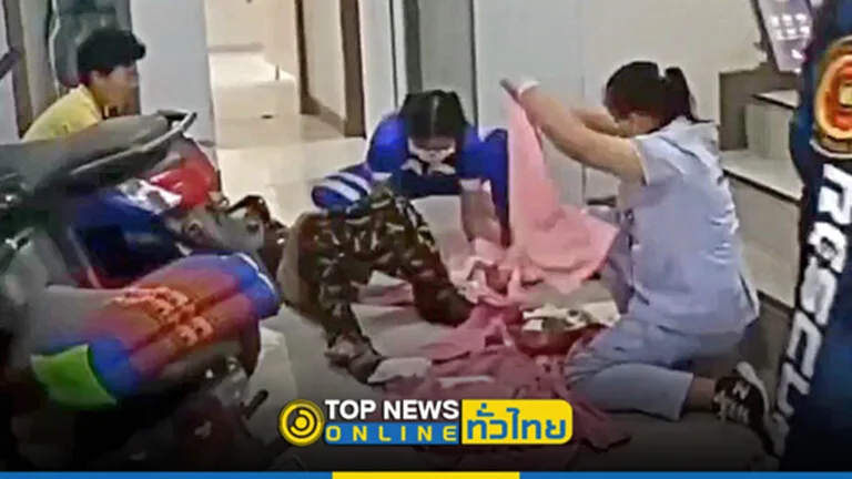 จากการสอบถามสุชิน วงศ์พันธุ์เสือ เจ้าหน้าที่อาสาสมัครมูลนิธิสว่างบำเพ็ญธรรมสถานได้กล่าวว่า ทางตนได้รับแจ้งว่ามีหญิงเจ็บครรภ์ใกล้คลอดอยู่ที่สภ.บ้านสร้าง ทางมูลนิธิอาสาสมัครกู้ภัยสว่างบำเพ็ญธรรมสถานพร้อมด้วยเจ้าหน้าที่โรงพยาบาลบ้านสร้างจึงลงทำการตรวจสอบ พบหญิงที่ตั้งครรภ์นั้นมีอายุ 28 ปี อายุครรภ์ 34 สัปดาห์ จากการตรวจสอบพบว่ามีหัวของทารกโผล่ออกมา ทางทีมพยาบาลโรงพยาบาลบ้านสร้างจึงได้ทำการช่วยเหลือนำทารกออกมา โดยเด็กมีอาการปลอดภัยแต่ถ้าหากไปทำการช่วยเหลือช้ากว่านี้เด็กอาจจะมีอาการเสี่ยงพี่จะเสียชีวิตเพราะว่าทางเจ้าหน้าที่แจ้งรกของแม่พันคอเด็กอยู่ส่วนเด็กที่คลอดออกมานะเป็นเพศชายมีน้ำหนัก 1,600 กรัมโดยทางตนและเจ้าหน้าที่พยาบาลได้นำเด็กและแม่ส่งโรงพยาบาลบ้านสร้างโดยแม่และเด็กนั้นมีอาการปลอดภัยทั้งคู่