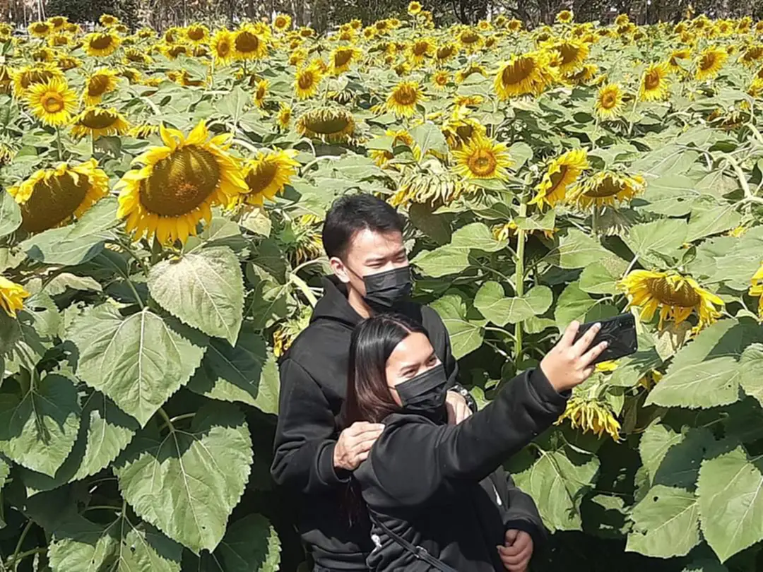ที่วัดสี่แยกเจริญพร ตำบลหนองกระทุ่ม อำเภอกำแพงแสน จังหวัดนครปฐมกันเป็นจำนวนมากและได้ถ่ายรูปทุ่งทางตะวันและดอกไม้หลากหลายชนิดในสวนด้านหน้าวัดอีกด้วย ขณะนี้ดอกไม้กำลังบานสะพรั้ง สวยงาม สามารถสร้างความสุขรอยยิ้มให้ประชาชน กันอย่างมาก โดยทางวันเปิดให้ประชาชน เข้าชมฟรี