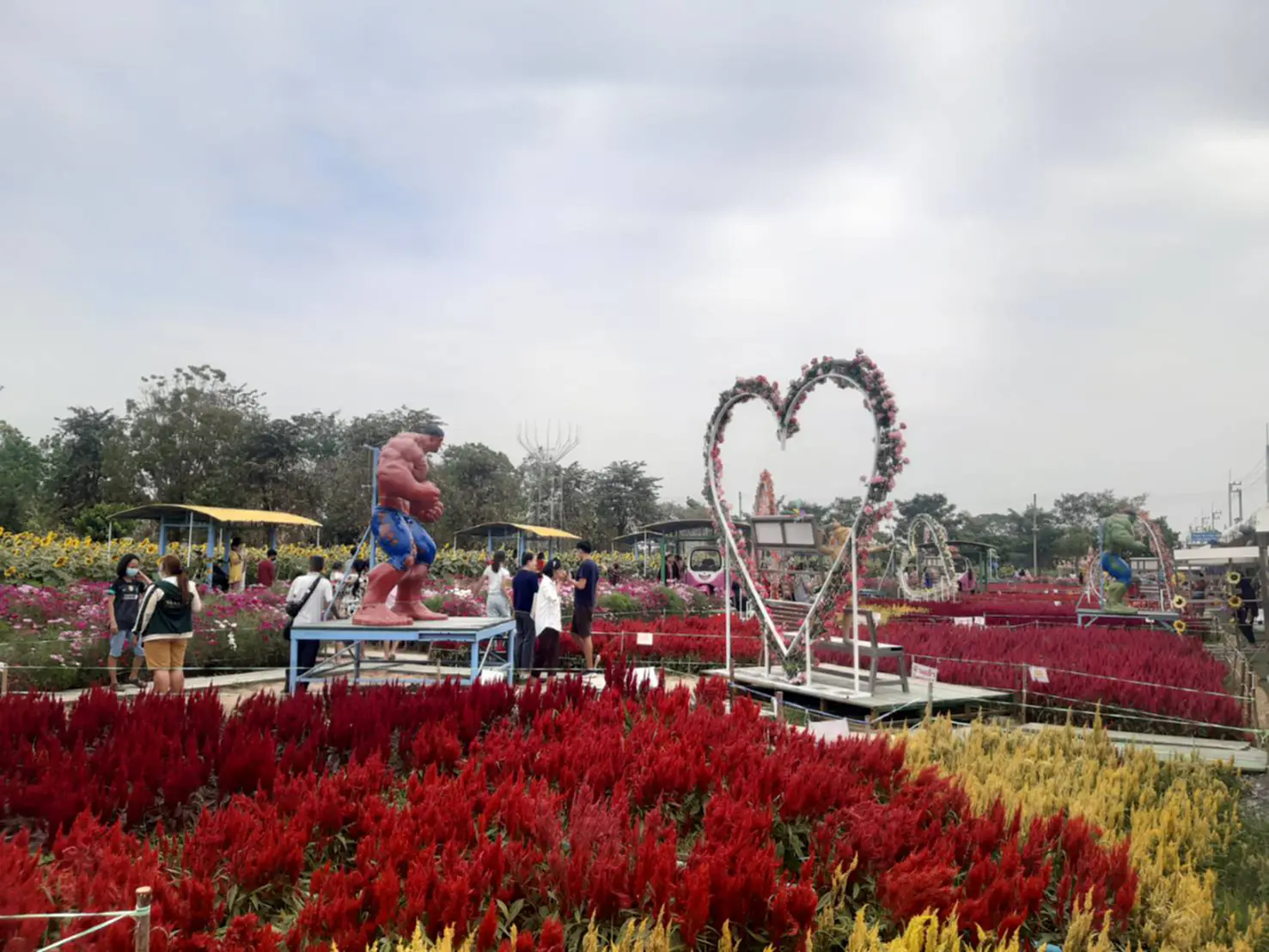 โดยแบ่งเป็นทุ่งทานตะวันส่วนหนึ่งและอีกส่วนหนึ่ง เป็นสวนไม้ดอกสวยงามสีสันสันสดใส หลากหลายนานาชนิด สาธุชนทั่วสารทิศ ได้เดินทางมากราบไหว้ขอพร หลวงปู่หลิวนั่งพญาเต่าเผือก