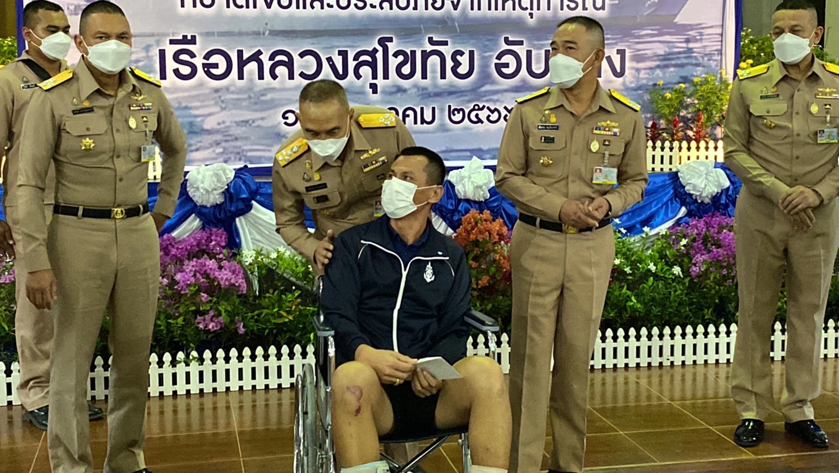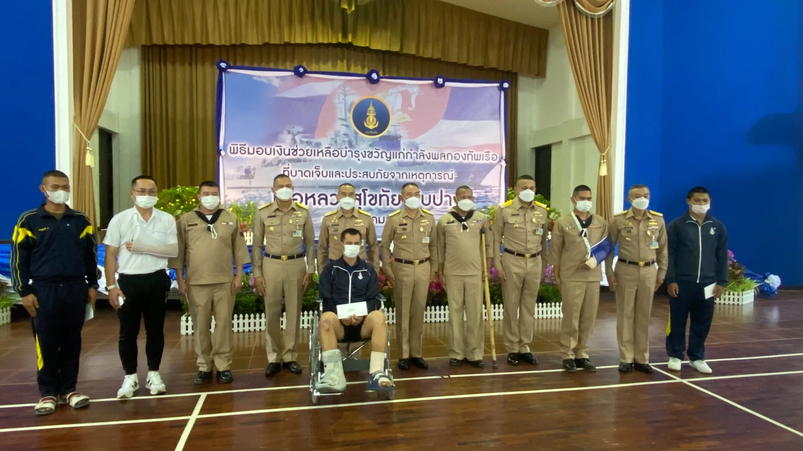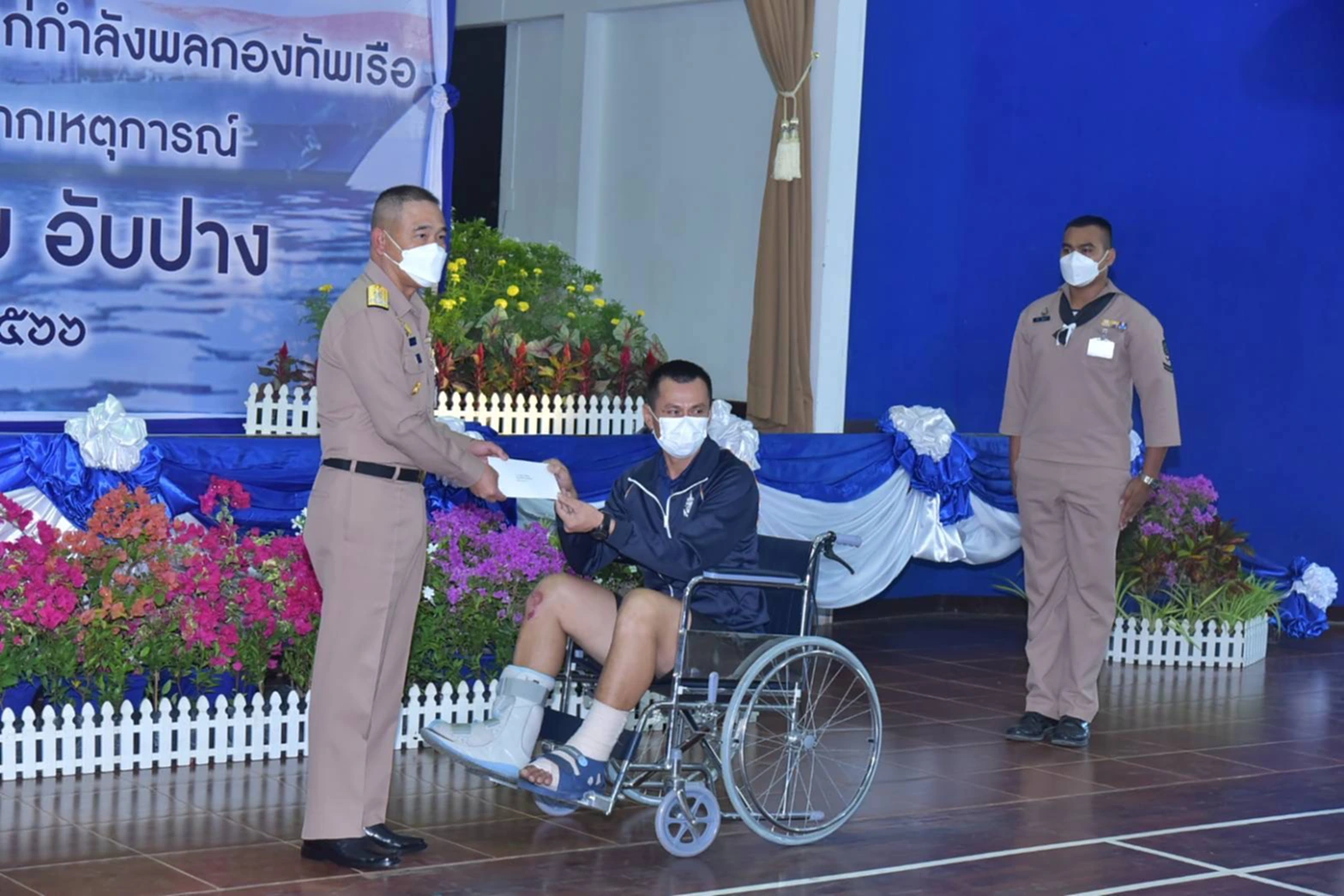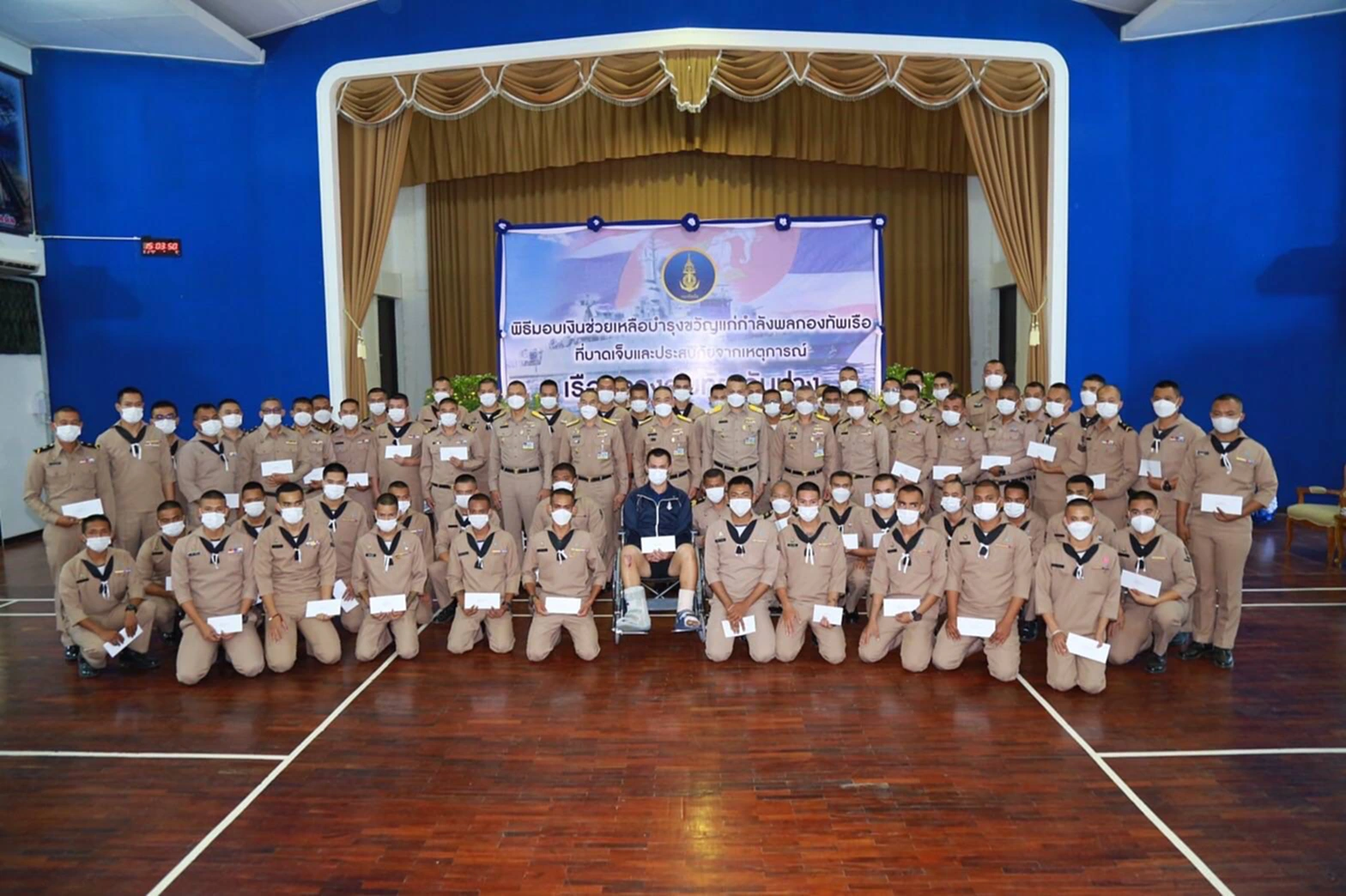 สำหรับในวันนี้ เป็นการมอบเงินช่วยเหลือกำลังพลกองทัพเรือที่ได้รับบาดเจ็บและประสบภัย จากเหตุการณ์เรือหลวงสุโขทัยอับปางจำนวน 76 นาย แยกเป็น กำลังพลที่รับบาดเจ็บจำนวน 27 นาย และกำลังพลที่ประสบภัยจำนวน 49 นาย