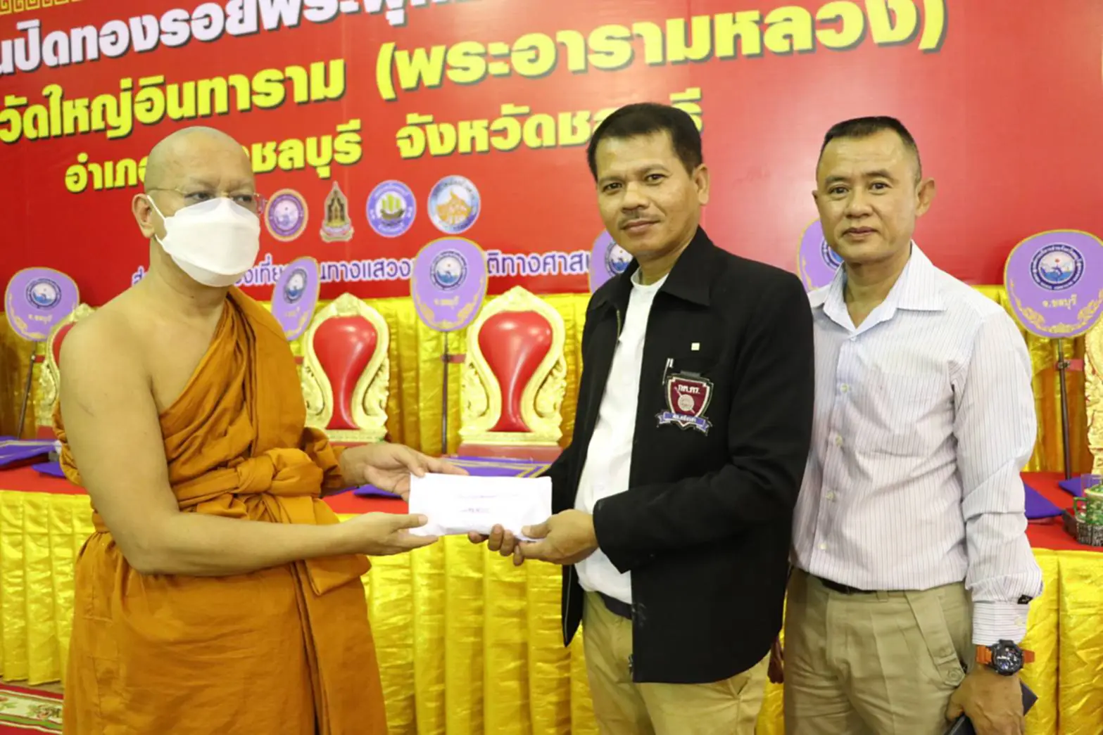 วันเสาร์ที่ 21 มกราคม 2566 เวลา 17.00 น. ณ วัดใหญ่อินทาราม พระอารามหลวง อำเภอเมืองชลบุรี จังหวัดชลบุรี นายวิทยา คุณปลื้ม นายกองค์การบริหารส่วนจังหวัดชลบุรี เป็นประธานในพิธีเปิดงานปิดทองรอยพระพุทธบาทศิลาทราย ประจำปี 2566 โดยมีนายสุติกรณ์ จำเริญพานิช นายกเทศมนตรีเมืองชลบุรี ดร.ฉวีวรรณ คำพา นายกสมาคมส่งเสริมการเลี้ยงไก่แห่งประเทศไทยในพระบรมราชูปถัมภ์ และประธานกรรมการบริหารบริษัทในเครือฉวีวรรณ นายธวัช เชาวลิต