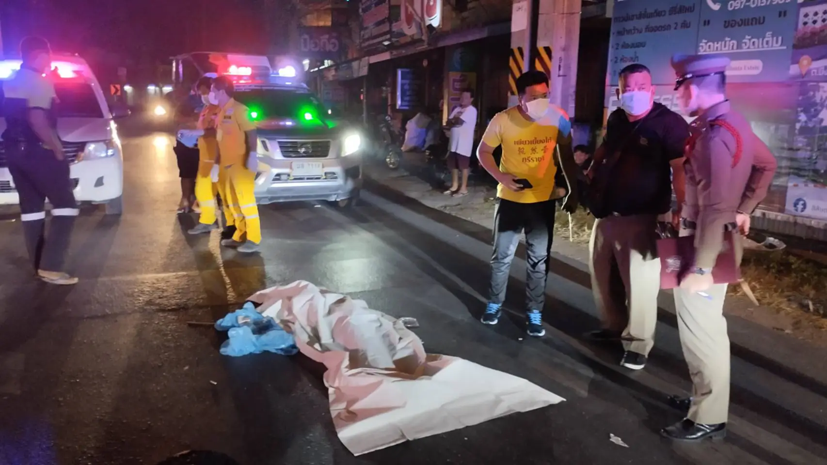 โดยรถจยย.ฮอนด้าสกู๊ปปี้ไอ สีขาว ที่ผู้เสียชีวิตขี่มา ยังคาอยู่ที่หน้ารถเก็บขยะ ยี่ห้ออีซุซุสี่ล้อ สีเหลือง ทางเจ้าหน้าที่ตำรวจได้สอบสวนนายสุขชัย อรุณหวังดี อายุ58 ปีคนขับรถเก็บขยะของเทศบาลนครเจ้าพระยาสุรศักดิ์ ได้บอกว่าวิ่งรถมาจากทางด้านแยกหัวนาเพื่อที่จะไปเก็บขยะที่ด้านหน้าตลาดวรกิจบึง ผู้เสียชีวิตก็ได้ขี่รถจยย.พุ่งออกมาจากซอยบึง-บ่อวิน ซอย39 พุ่งตัดหน้ากะทันหันจึงได้ชนจนร่างลอยศีรษะกระแทกพื้นจนเสียชีวิตดังกล่าว ซึ่งทางตำรวจยังไม่ปักใจเชื่อจึงควบคุมตัวไปสอยสวนต่อที่สภ.หนองขามและจะมาตรวจสอบกล้องวงจรปิดในบริเวณนั้นเพื่อเป็นแนวทางการสอบสวนต่อไป ส่วนศพผู้เสียชีวิตได้ให้หน่วยกู้ภัยเพียวเยี้ยงไท้ศรีราชานำส่งโรงพยาบาลแหลมฉบังเพื่อรอญาติมารับศพไปบำเพ็ญกุศลต่อไป