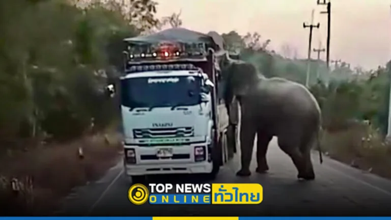 จากภาพจะเห็นว่า ช้างป่าฤาไน ฉายา ไอ้ดื้อหกหก ที่ได้ปิดถนน3076 ตั้งด่านลอยเพื่อปล้นอ้อยกินจากบนรถบรรทุกพ่วง 18 ล้อ ด้วยช่วงมกราคม ในต้นปีจะเป็นฤดูเก็บเกี่ยวผลผลิตคืออ้อยไปส่งยังโรงงานน้ำตาล ก็มักจะพบว่าช้างป่ามักชอบออกมาตั้งด่านลอย แต่จากข้อมูลทราบว่าครั้งนี้จะแตกต่างกว่าทุกครั้ง ด้วยช้างป่าฤาไน ฉายา ไอ้ดื้อหกหก จะซ่ามาก เจ้าอารมณ์ เบียดจนรถได้รับความเสียหาย จากภาพยังเห็นว่า รถบรรทุกพ่วง18ล้อ ที่กำลังถูกกักด่านลอย บังรถจักรยานยนต์ชาวบ้านไว้ รอสบโอกาสจึงบังนำ