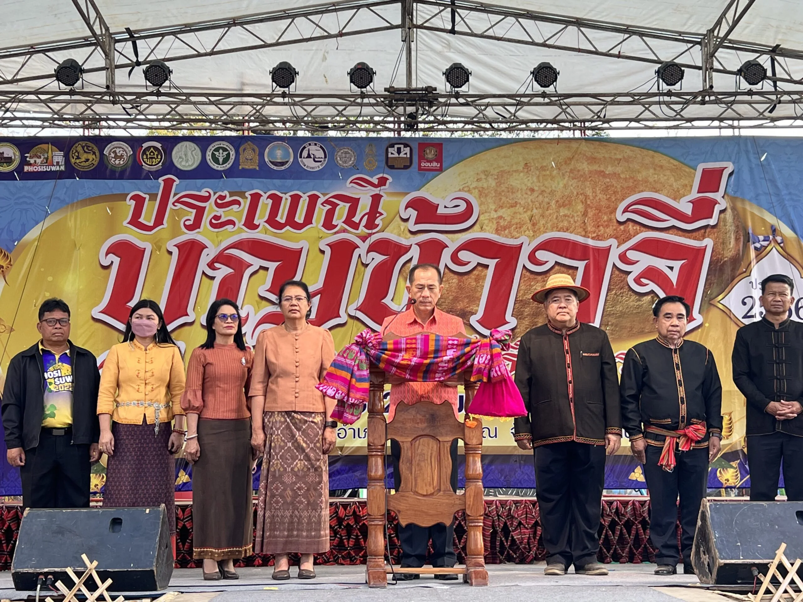 เมื่อวันที่ 17 กุมภาพันธ์ 2566 ผู้สื่อข่าวรายงานว่า ที่สนามหน้าที่ว่าการ อ.โพธิ์ศรีสุวรรณ จ.ศรีสะเกษ นายนพ พงศ์ผลาดิสัย รอง ผวจ.ศรีสะเกษ ได้เดินทางไปเป็นประธานในพิธีเปิดงานประเพณีบุญข้าวจี่มหัศจรรย์ของดีโพธิ์ศรีสุวรรณ ประจำปี 2566 ซึ่ง อ.โพธิ์ศรีสุวรรณร่วมกับสภาวัฒนธรรมอำเภอ องค์กรปกครองส่วนท้องถิ่น ทุกแห่ง ส่วนราชการทุกส่วน หน่วยงานรัฐวิสาหกิจ ผู้บริหารสถานศึกษา ทุกแห่ง สมาชิกสภาองค์กรปกครองท้องถิ่น กลุ่มพลังมวลขน ชมรมกำนัน ผู้ใหญ่บ้าน ฯลฯ และชาวอำเภอโพธิ์ศรีสุวรรณ ได้ร่วมกันจัดงานนี้ขึ้น ซึ่ง”ประเพณีบุญข้าวจี่มหัศจรรย์ของดีโพธิ์ศรีสุวรรณ” จัดขึ้นเป็นประจำทุกปี ตั้งแต่ปี พ.ศ.2561 โดยในปี พ.ศ.2566 กำหนดขึ้นระหว่างวันที่ 16-20 กุมภาพันธ์ 2566 โดยมีการจัดทำข้าวจี่ยักษ์หลายอันมาแสดงให้ชมด้วย หลังจากพิธีเปิดงานแล้ว นางรำจาก 5 ตำบลกว่า 500 คนที่แต่งกายด้วยชุดพื้นเมืองอย่างสวยงามมากได้ร่วมกันรำเปิดงานอย่างยิ่งใหญ่ตระการตาโดยมีนายสุวรรณ เนตรเนติกุล นายอำเภอโพธิ์ศรีสุวรรณ เป็นผู้กล่าวรายงาน และมี นายประหยัด ถิลา วัฒนธรรม จ.ศรีสะเกษ พร้อมด้วย น.ส.วริศรา โสภาค พัฒนาการจังหวัดศรีสะเกษ นายอภิศักดิ์ แซ่จึง รองนายก อบจ.ศรีสะเกษ ดร.ฤทธา นันทพันธ์ อดีตศึกษาธิการจังหวัดศรีสะเกษ นางขวัญตา คิดดี ปลัดอาวุโส อ.โพธิ์ศรีสุวรรณ ได้นำข้าราชการ ตำรวจ พนักงานองค์กรปกครองส่วนท้องถิ่น กำนัน ผู้ใหญ่บ้าน ผู้ช่วยผู้ใหญ่บ้าน แพทย์ สารวัตร ทุกตำบล และประชาชนอำเภอโพธิ์ศรีสุวรรณจาก 5 ตำบล 80 หมู่บ้าน เข้าร่วมกิจกรรมเป็นจำนวนมาก