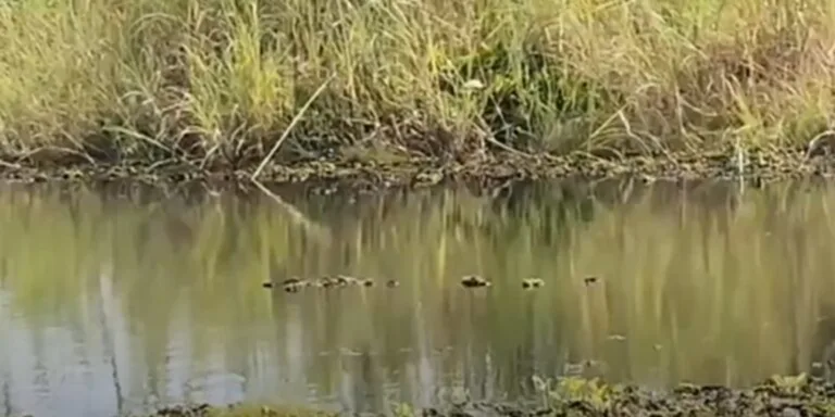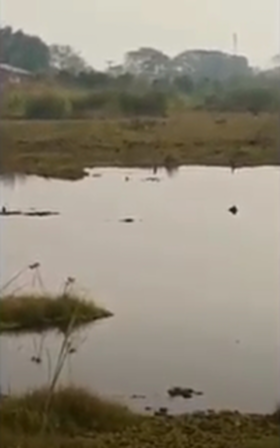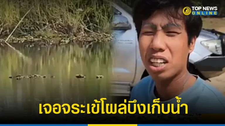 หนุ่มนักตกปลาทิ้งเบ็ดแทบไม่ทัน ผวารีบเผ่นขึ้นฝั่ง เจอจระเข้โผล่บึงเก็บน้ำ