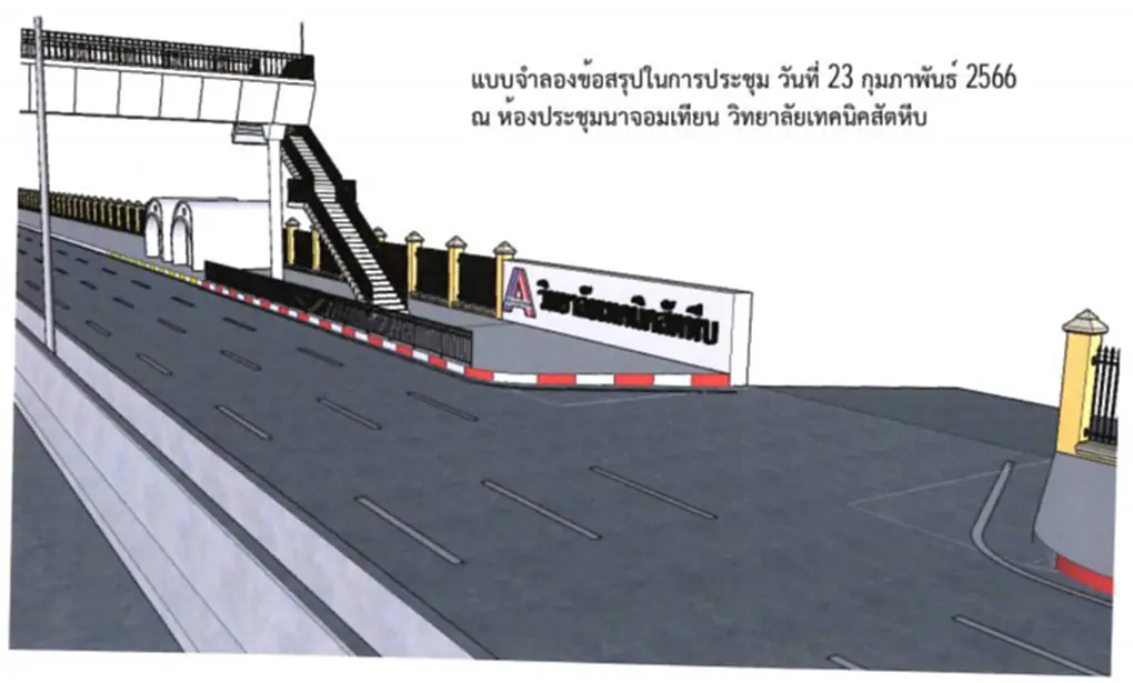 ด้าน กรมทางหลวง นำโดยนายรัตนะ บุญปัญญโรจน์ นายช่างโครงการฯ กรมทางหลวงนายวรพจน์ โพทา นายช่างควบคุมงาน กรมทางหลวง และนายเจนธรรม ปั้นทอง ตัวแทน บริษัท พี เอส ดี บริษัทผู้รับเหมาก่อสร้าง ได้เข้าร่วมประชุมเพื่อหาข้อยุติในการก่อสร้างถนน และสะพานลอย บริเวณหน้าวิทยาลัยเทคนิคสัตหีบ