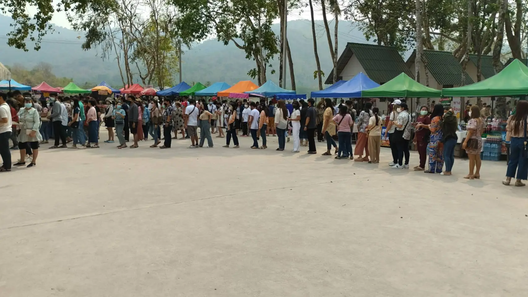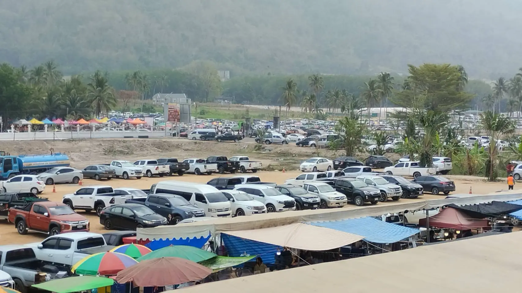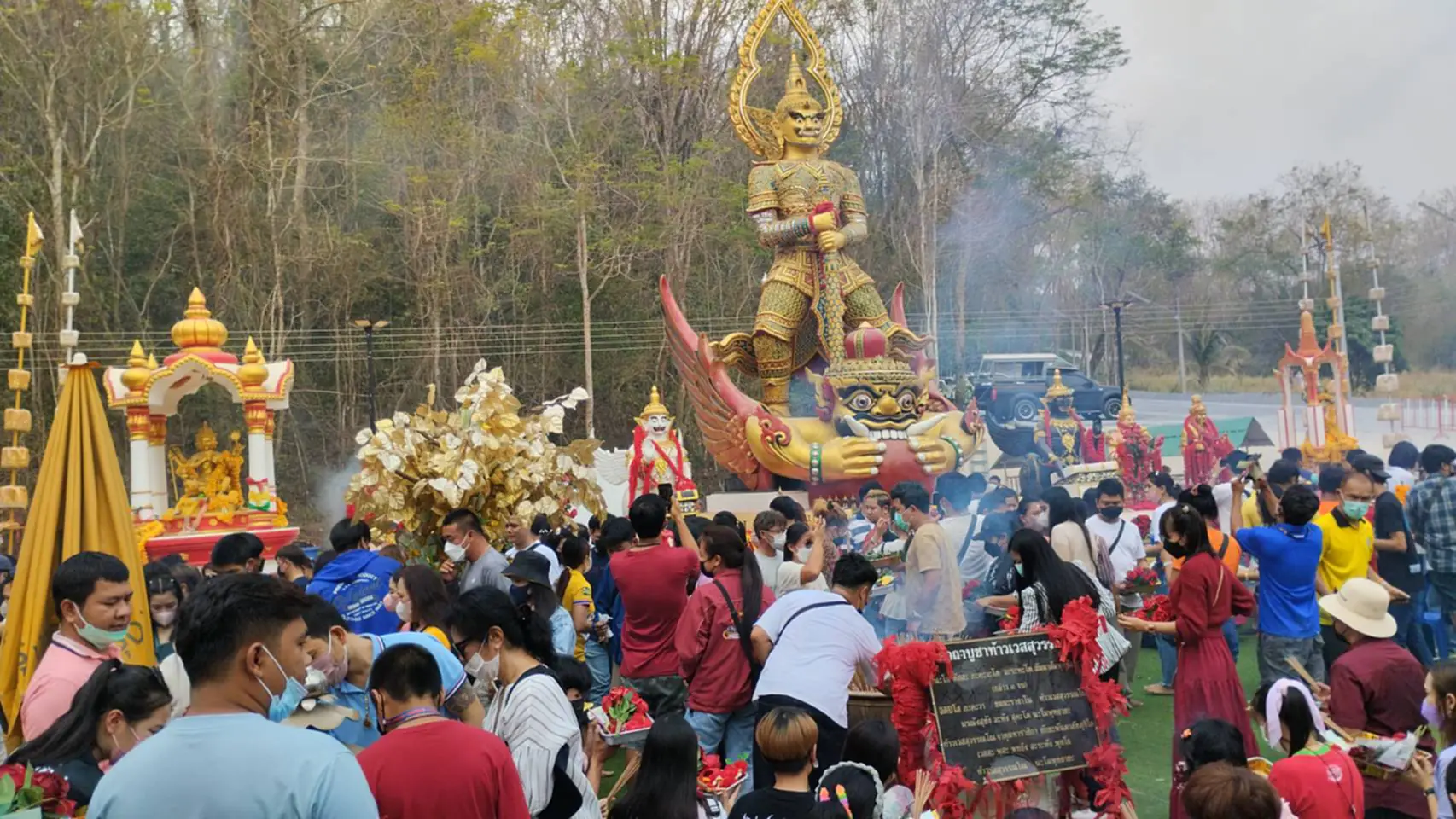 เวลา11.30น.วันที่ 12 มีนาคม 66 ที่ริมอุโบสถวัดเขาช่องลม ต.เขาคันทรง อ.ศรีราชา จ.ชลบุรี โดยในวันนี้เป็นวันอาทิตย์ใกล้หวยออกได้มีประชาชนทยอยเดินทางมากันมาอย่างต่อเนื่อง ตั้งแต่เช้าซึ่งทำให้ทางเข้าวัดเขาช่องลมรถยนต์ติดกันยาวกว่า 3 กิโลเมตร โดยรถเคลื่อนตัวได้อย่างช้าๆตลอดเส้นทางเข้าวัด โดยทุกคนเดินทางมา เพื่อมากราบไหว้ “ท้าวเวสสุวรรณทรงราหู” (ท่านทองล้น) องค์ใหญ่สูง 9.9 เมตร ที่ตั้งตระหง่านอยู่ที่หน้าเขาช่องลมโดยทุกคนที่มาต่างเข้าแถวเพื่อทำบุญขอรับเครื่องเซ่นไหว้จากทางวัดกันเป็นแถวยาวเป็นระเบียบหลังจากที่ไหว้องค์ท้าวเวสสุวรรณด้วยเครื่องเซ่นไหว้แล้ว ก็จุดธูปเสี่ยงทายในกระถาง เพื่อหาเลขเด็ดไปซื้อสลากกินแบ่งรัฐบาลงวดวันที่ 16 มีนาคมนี้