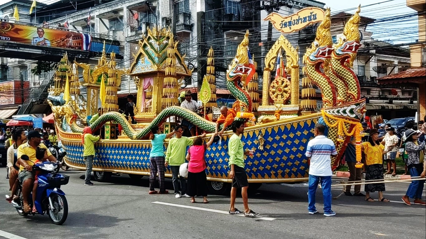 ทั้งนี้ สำหรับความเป็นมาของประเพณีชักพระเมื่อครั้งอดีตนั้น จะมีคณะพุทธบริษัทจากวัดต่างๆ ในจังหวัดตรัง รวมทั้งวัดควนขันร่วมกันชักลากเรือพระไปประดิษฐานไว้กลางทุ่งนา ในวันแรม 1 ค่ำ เดือน 5 หรือเดือนเมษายนของทุกปี จากนั้น ก็จะทำการแย่งเรือพระ ซึ่งมีลักษณะคล้ายกับการชักเย่อ เพื่อนำเรือพระที่ได้ไปประดิษฐานไว้ที่วัดในหมู่บ้านของตน พร้อมบุษบกและเรือพระ หากวัดใดเป็นผู้ชนะก็จะได้เป็นเจ้าภาพในปีต่อไป โดยถือปฏิบัติหมุนเวียนสับเปลี่ยนกันไป นับเป็นประเพณีที่ส่งเสริมกิจกรรมทางพระพุทธศาสนา และส่งเสริมคุณธรรมด้านความรัก ความสามัคคีของคนในท้องถิ่น ควรค่าแก่การอนุรักษ์ให้ยั่งยืน สืบทอดเป็นมรดกสู่ชนรุ่นหลัง