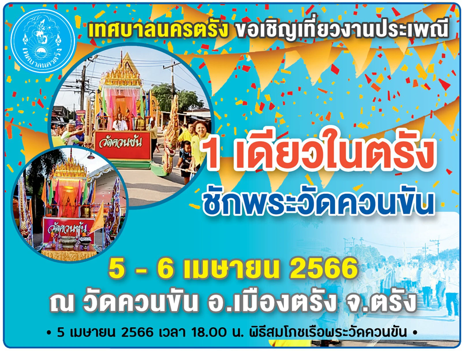 วันที่ 15 มี.ค. 2566 ดร.สัญญา ศรีวิเชียร นายกเทศมนตรีนครตรัง เปิดเผยว่า เทศบาลนครตรัง ร่วมกับชุมชนควนขัน เตรียมจัดงานประเพณีชักพระวัดควนขัน ประจำปี 2566 ระหว่างวันที่ 5 – 6 เมษายน 2566 ณ วัดควนขัน เพื่อสนับสนุน ส่งเสริมการอนุรักษ์ ฟื้นฟูและสืบสานขนบธรรมเนียมประเพณี ศิลปะ วัฒนธรรมอันดีงามของท้องถิ่นให้ยั่งยืนสืบไป โดยประเพณีชักพระ หรือลากพระ เป็นประเพณีเก่าแก่ที่ชาวพุทธภาคใต้ถือปฏิบัติสืบต่อกันมาเป็นเวลานาน ในช่วงวันแรม 1 ค่ำเดือน 5 ของทุกปี โดยในทุกๆ ปี เทศบาลนครตรัง ได้ร่วมกับชุมชนควนขัน จัดงานประเพณีชักพระวัดควนขัน หรือประเพณีลากพระเดือน 5 ที่หลงเหลือเพียงแห่งเดียวในประเทศไทยขึ้น