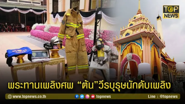 วันนี้มีพิธีพระราชทานเพลิงศพ นายธนภพ ประไพ หรือ ต้น วีรบุรุษนักดับเพลิงจากเหตุไฟไหม้อาคารถล่มภายในหมู่บ้านกฤษดานคร 31 เขตทวีวัฒนา ซึ่งบรรยากาศเต็มไปด้วยความโศกเศร้าของบรรดาภรรยาและญาติ พี่น้องชาวกู้ภัย