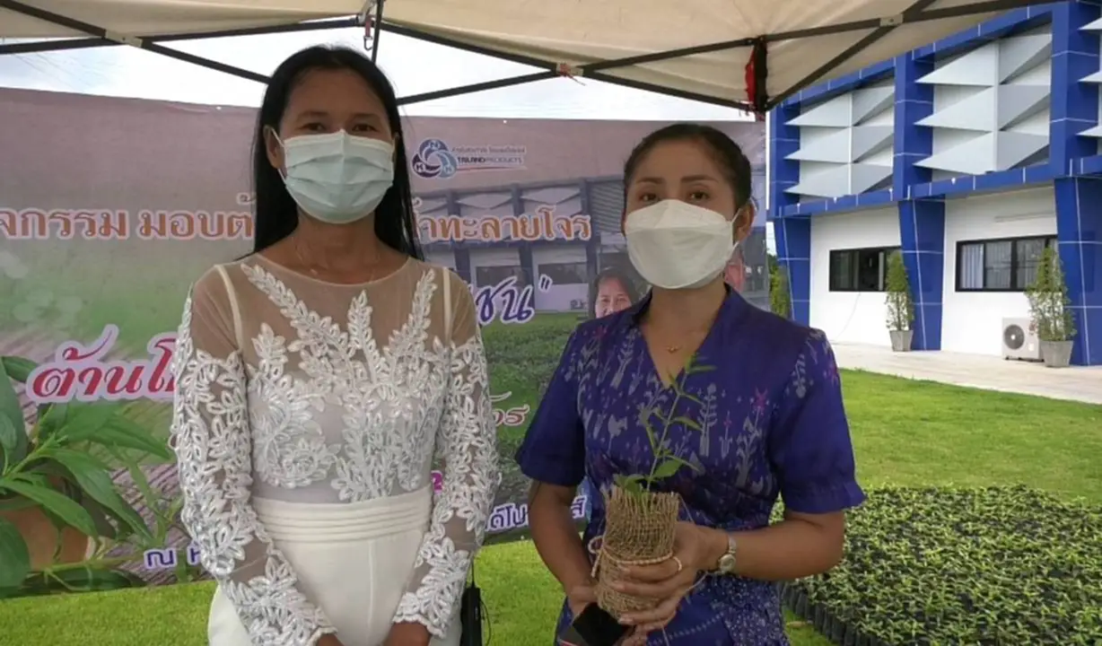 นางวิรัตน์ ชื่นบาล นักธุรกิจสาว เจ้าของห้างหุ้นส่วนจำกัด ไตรแลนด์โปรดักส์ และ ณัฐชาฟาร์ม ได้กล่าวว่า ในวันนี้ได้มอบฟ้าทะลายโจรซึ่งเป็นโครงการมอบต้นกล้าฟ้าทลายโจรสู่ชุมชน เนื่องในวันแม่แห่งชาติ ซึ่งจากวิกฤตสถานการณ์โรคระบาดโควิด-19 เราก็ได้เห็นประโยชน์ของฟ้าทะลายโจร ซึ่งเป็นสมุนไพรทางเลือกอีกทางเลือกหนึ่ง จึงได้เกิดโครงการนี้ขึ้นมา โดยได้รับความอนุเคราะห์จากทางศูนย์เพราะชำกล้าไม้จังหวัดสุรินทร์ ในการจัดเตรียมกล้าไม้ให้ เพื่อนำมามอบในโครงการนี้ เพื่อจะได้แจกจ่ายให้กับชุมชนนำไปปลูกขยายพันธุ์ และนำไปใช้ประโยชน์ต่อไป โดยในวันนี้ก็ได้มีตัวแทนจากชุมชนและตำบลต่างๆ รวมทั้งองค์กรหน่วยงานในพื้นที่ ก็ได้เดินทางมารับมอบกันเป็นจำนวนมาก ซึ่งกิจกรรมในวันนี้ก็เพื่อเป็นการถวายเป็นพระราชกุศลเนื่องในวันแม่แห่งชาติด้วย