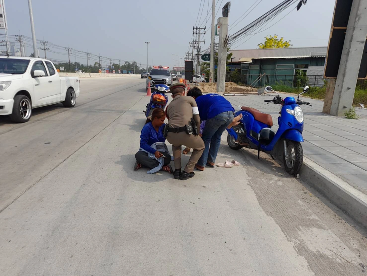 ผู้สื่อข่าวรายงานว่า เมื่อเวลา 09.45 น. วันที่ 20 เมษายน 2566 มีพลเมืองดี แจ้งผ่านศูนย์วิทยุนาจอมเทียนว่า พบผู้หญิงขับขี่รถจักรยานยนต์ประสบอุบัติเหตุ บริเวณ ถ.สุขุมวิท ขาเข้าสัตหีบ ใกล้เคียงปากทางเข้า หมู่บ้านเอื้ออาทรนาจอมเทียน ซึ่งขณะนั้น ร.ต.อ.เทพรส เกษมสุข รอง สวป.ฯ ทำหน้าที่ ร้อยเวร 60 พร้อม อส.จร ไสว คิดเลิศล้ำ จึงได้ลงพื้นที่ไปตรวจสอบบริเวณตามที่ใด้รับแจ้งในทันที