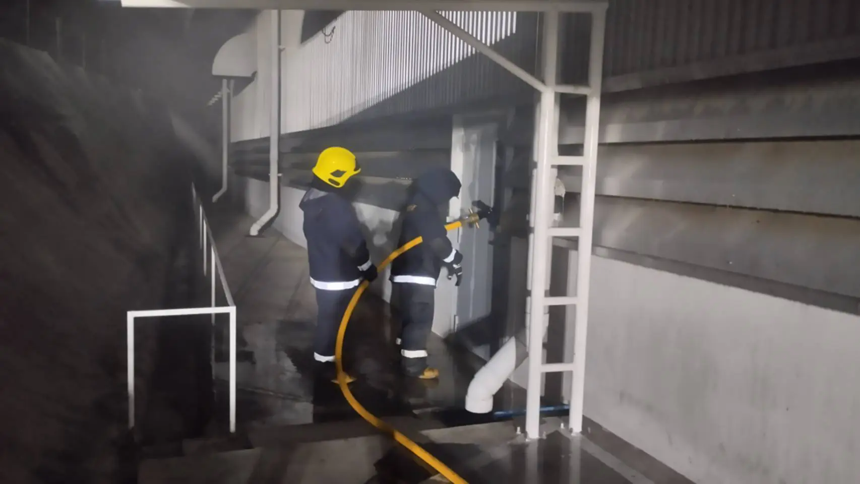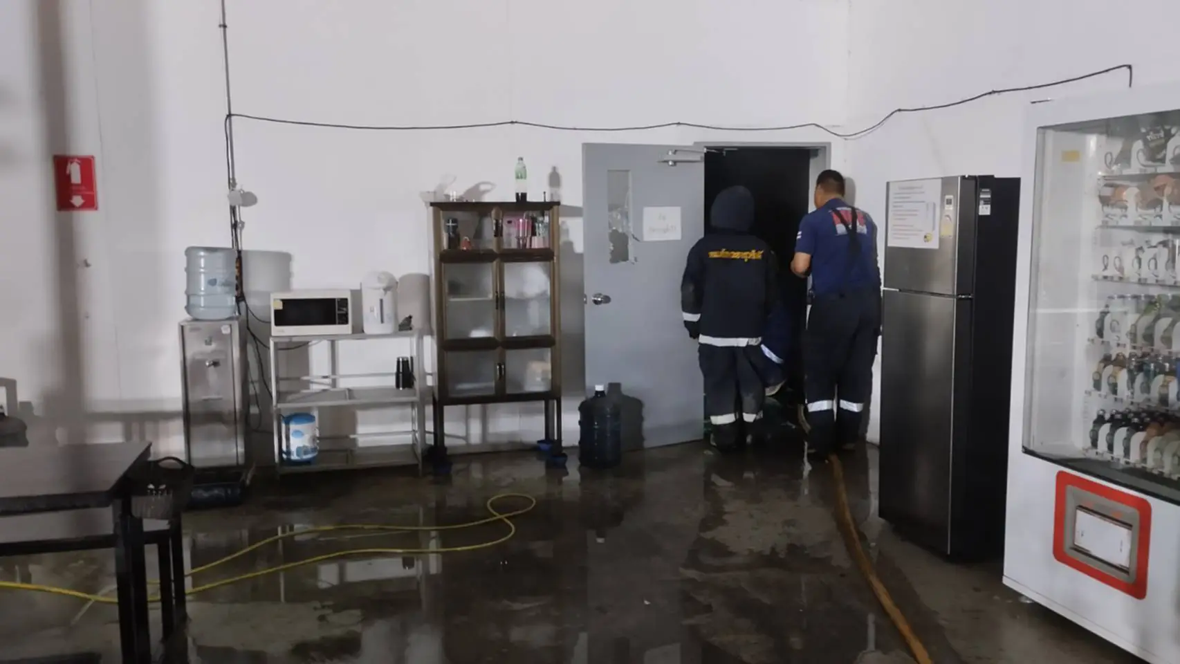 ซึ่งทางเจ้าหน้าที่บรรเทาสาธารณภัยเทศบาลนครเจ้าพระยาสุรศักดิ์ ได้นำรถดับเพลิงจำนวน 2 คัน พร้อมเจ้าหน้าที่ดับเพลิง 10 คนออกมาทำการดับเพลิงที่ลุกโหมในคลังสินค้าซึ่งมีเศษกองกระดาษ ชิ้นส่วนผลิตแอร์ที่มีน้ำมันเคลือบอยู่ ที่กองอยู่ด้านหลังโรงงานจึงเป็นเชื้อเพลิงอย่างดีที่ทำให้แสงเพลิงลุกโหม โดยทางเจ้าหน้าที่ของบริษัทและเจ้าหน้าที่ดับเพลิงต้องทำการพังกระจกข้างประตูและระดมฉีดน้ำเข้าไป 2 ด้าน ทั้งด้านประตูหลังและประตูข้าง
