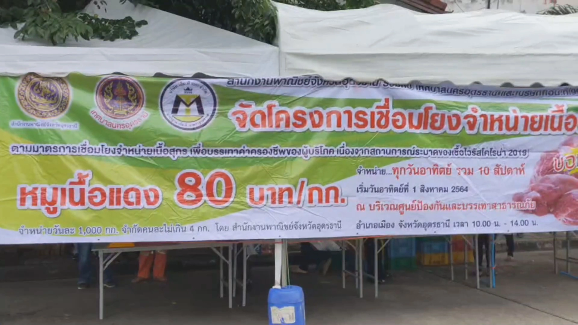 โดยจะให้ประชาชนซื้อได้ คนละ 4 กิโลกรัมเท่านั้น ซึ่งจะมีจำหน่ายทุกวันอาทิตย์ เป็นระยะเวลา 10 อาทิตย์ ซึ่งโครงการนี้ได้เริ่มมาช่วงวันที่ 1 สิงหาคมที่ผ่านมา โดยเริ่มจำหน่ายตั้งแต่เวลา 08.00 น.เป็นต้นไปจนกว่าเนื้อหมูจะหมด ทางเทศบาลนครอุดรธานี ได้จัดจุดตรวจคัดกรอง จัดให้ประชาชน ทำการเว้นระยะห่างตามมาตรการป้องกันและแพร่ระบาดของเชื้อไวรัสโควิด19 อย่างเคร่งคัด