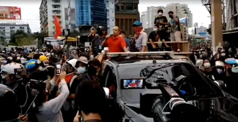 เราไม่ได้มาใช้กำลัง เราไม่ได้มาเอาชนะคฝ. เรามาเอาชนะพลเอกประยุทธ์ ซึ่งวันนี้เราชนะแล้ว ขอให้ผู้ชุมนุมออกมาจากแนวคอนเทนเนอร์และทยอยกลับบ้านเลย อยู่ต่อก็ไม่มีประโยชน์ ขอความกรุณาน้องๆ ถอนกำลังกลับออกมา ภารกิจของเราไม่ใช่สิ่งนี้ เชื่อผมเถอะครับพี่น้อง