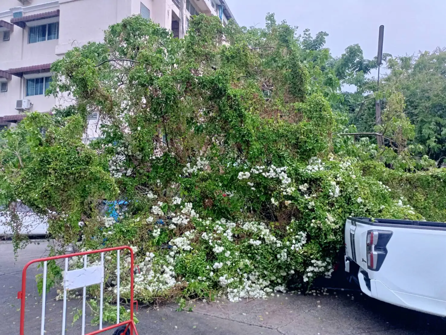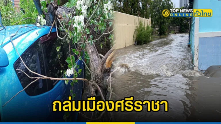 ในขณะเดียวกันที่บริเวณ ซอยศรีราชานคร ต.ศรีราชา อ.ศรีราชา จ.ชลบุรี ได้เกิดลมกระโชกแรง น้ำท่วมขังบนถนนหลายสาย ส่งผลให้การจราจรติดขัด โดยเฉพาะในเขตพื้นที่ ตัวเมืองศรีราชา ที่ทำการชุมชนศรีราชานครเกิด แรงลมพัดกระหน่ำจนต้นไม้ขนาดใหญ่หักลงมาทับ รถเก๋งยี่ห้อ ฮอนด้าแจ๊ส สีฟ้าหมายเลขทะเบียนกบ 5782 ขอนแก่น