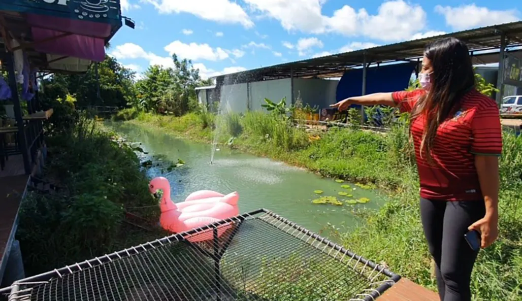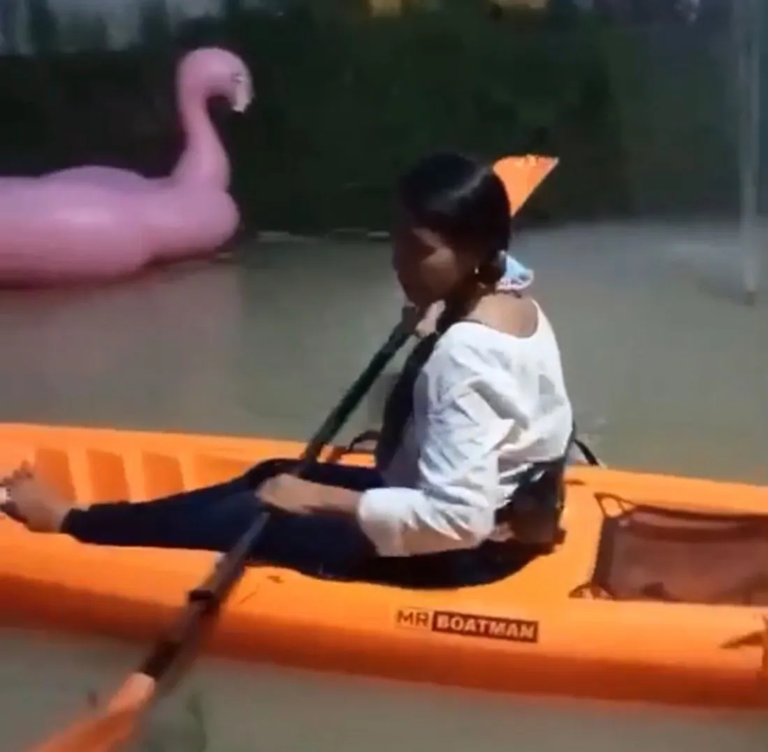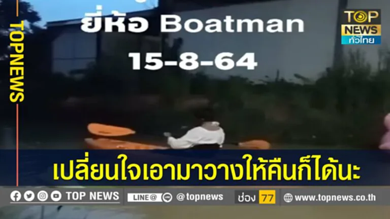 น.ส. สุภาวดี สีเขียว(ปู) เจ้าของร้านกาแฟ (เสื้อสีแดงลายทางขวาง) ได้เล่าให้ทีมข่าวฟังว่า ตนนั้นซื้อเรือคายัคมาคอยให้ลูกค้าได้ใช้บริการ พายเรือเล่นในสระน้ำของร้าน แต่เมื่อคืนวันที่ 15 สิงหาคม ที่ผ่านมานั้น เรือคายัค ยี่ห้อ BOATMAN สีส้มของปูได้หายไป พอเช้าขึ้นมาตนนั้นก็ได้เดินตรวจความเรียบร้อยของร้านกาแฟของตน และสังเกตเห็นพงหญ้าบริเวณที่จอดเรือคายัคนั้นราบ ต้นไม้และหญ้าเป็นรอยราบขนาบกับพื้นดิน ตนจึงเดินไปสำรวจก็พบว่าเรือคายัคของตนที่ซื้อไว้ได้ประมาณ2เดือน ได้หายไปจากร่องน้ำของร้านกาแฟของตน เหลืออยู่แต่เรือเป่าลมหงษ์และเป็ดเท่านั้น ตนจึงคิดในใจโดนแล้วเรา โจรมาขโมยเรือเราไปแล้ว